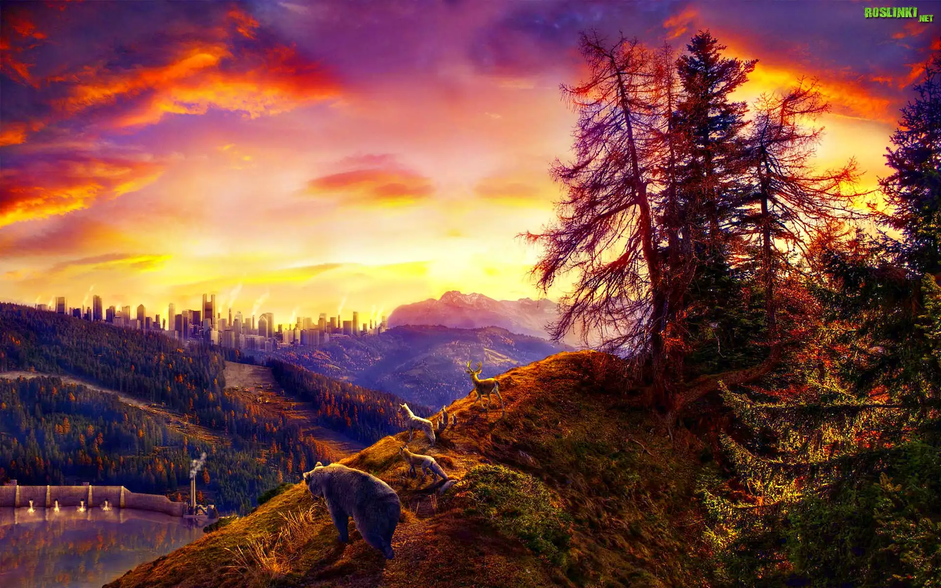 Rośliny: Zachód, Słońca, Góry, Drzewa