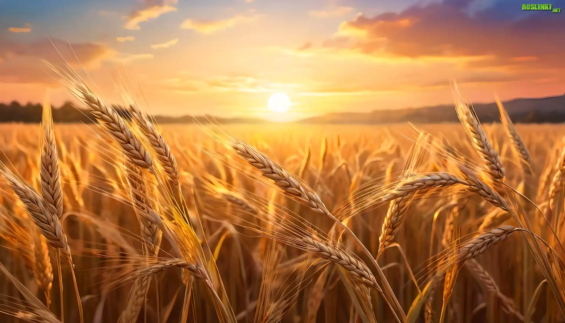 Rośliny: Kłosy, Zboże, Pole, Zachód słońca, Grafika
