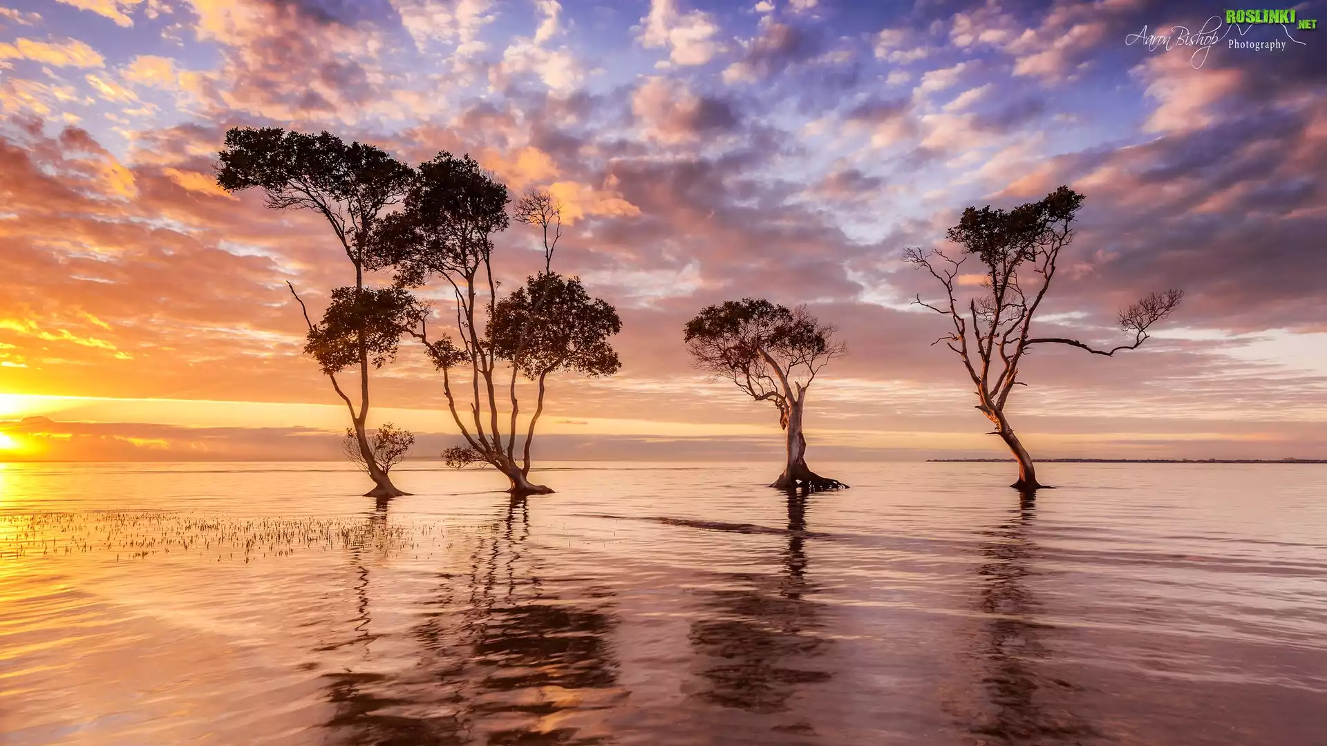 Rośliny: Zachód, Słońca, Jezioro, Drzewa