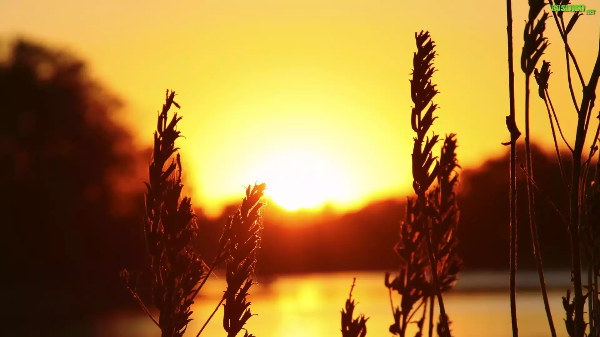 Rośliny: Zachód, Słońca, Jezioro, Trawa