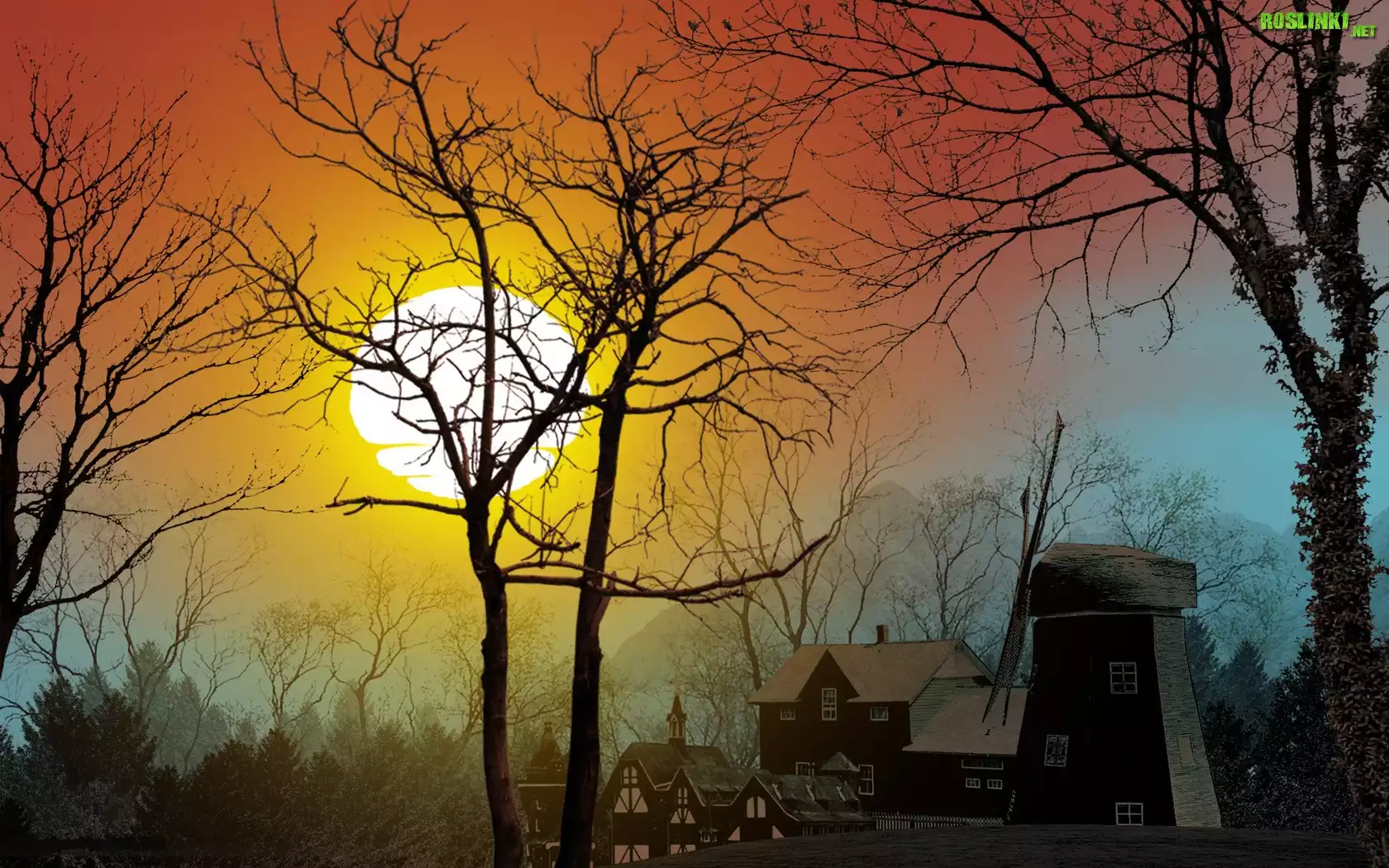 Rośliny: Zachód, Słońca, Młyn, Drzewa