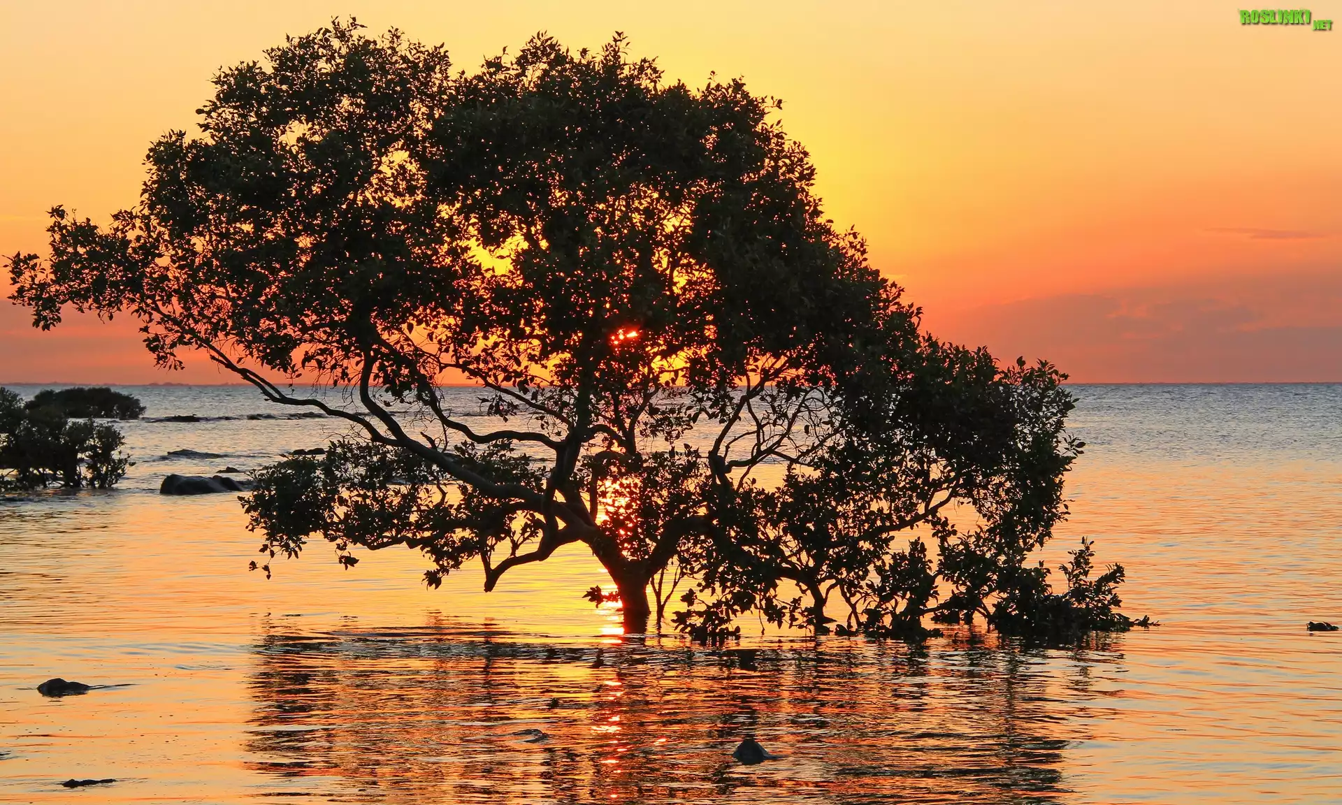 Rośliny: Zachód, Słońca, Morze, Drzewo