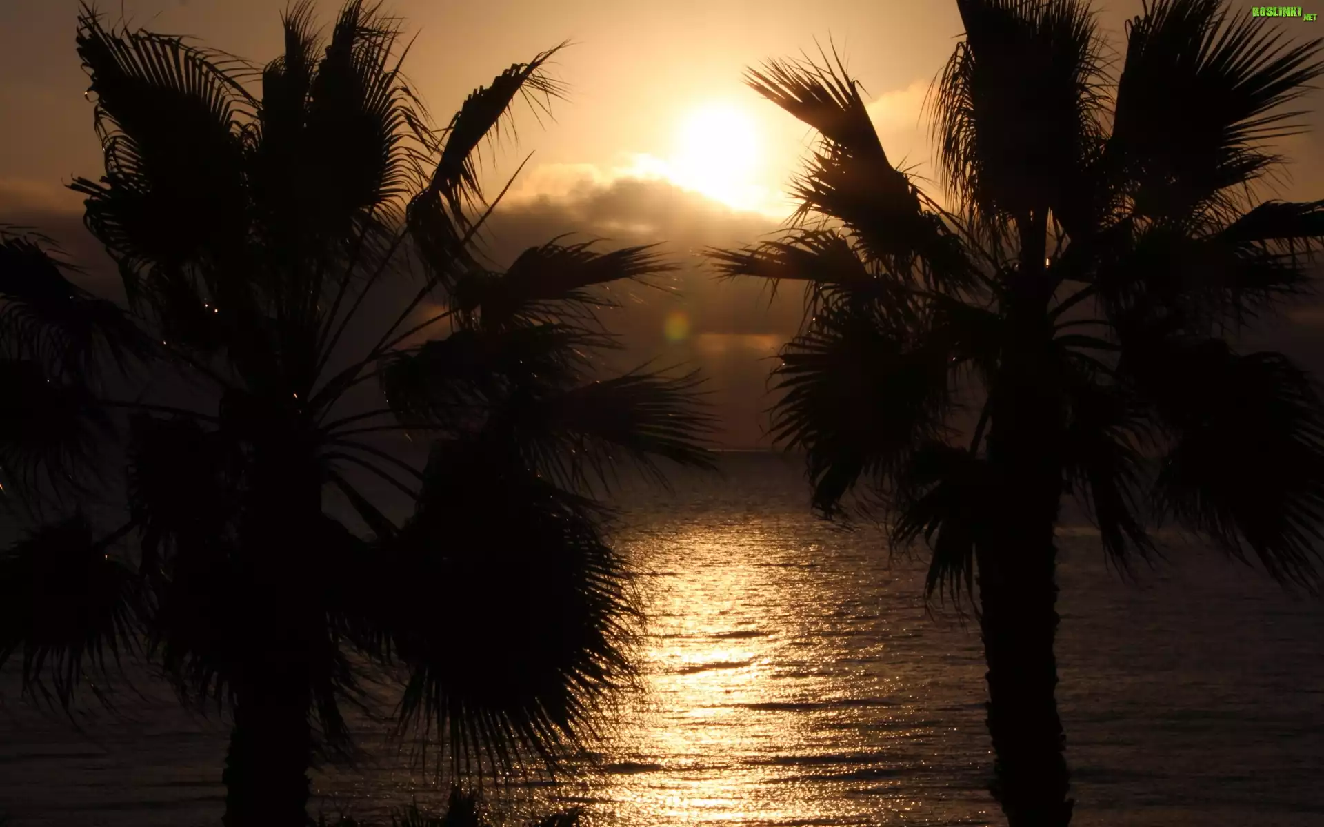 Rośliny: Zachód, Słońca, Morze, Palmy