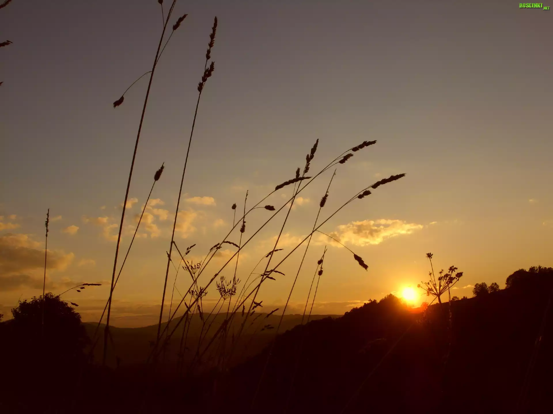 Rośliny: Zachód Słońca, Niebo, Trawy