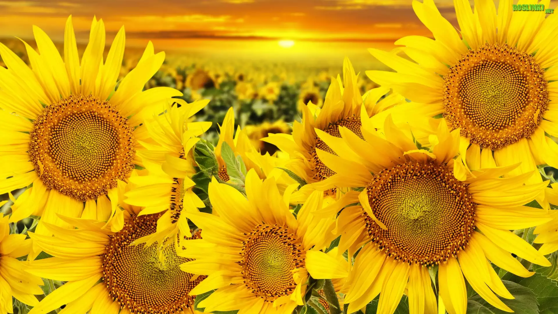 Rośliny: Zachód słońca, Kwiaty, Żółte, Słoneczniki