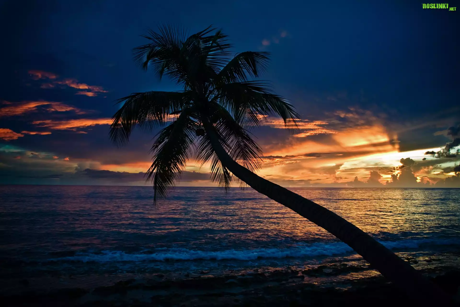 Rośliny: Zachód, Słońca, Palma, Morze