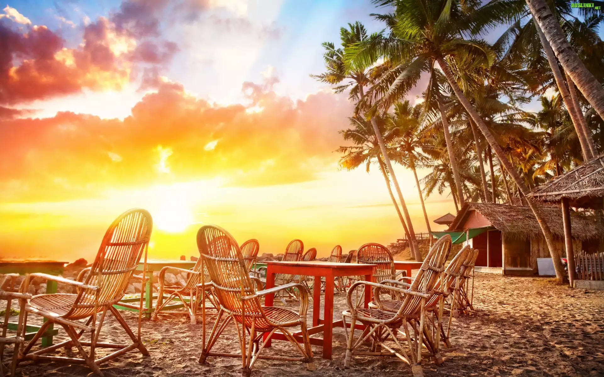 Rośliny: Zachód, Słońca, Palmy, Fotele