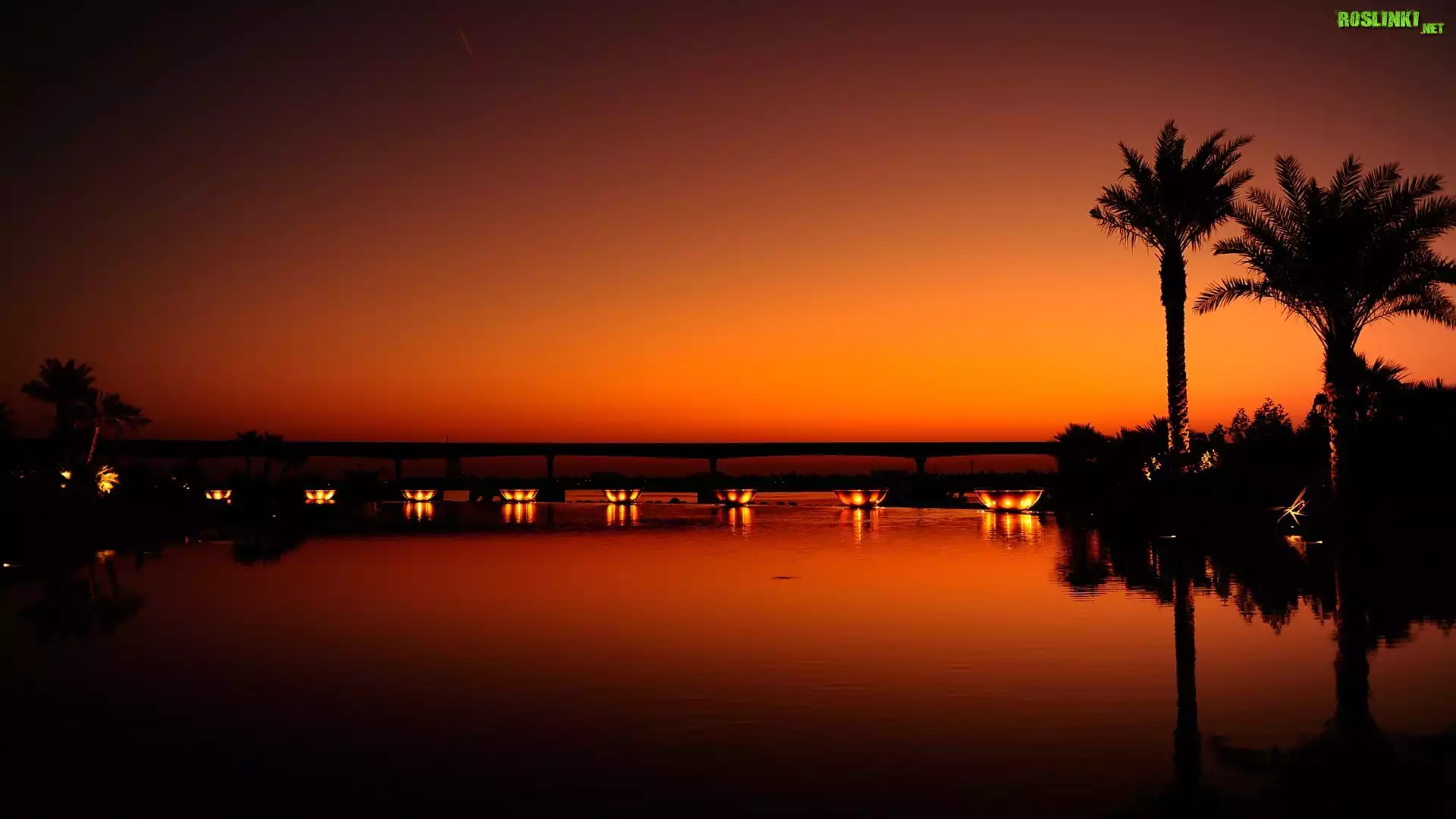 Rośliny: Zachód Słońca, Palmy, Most