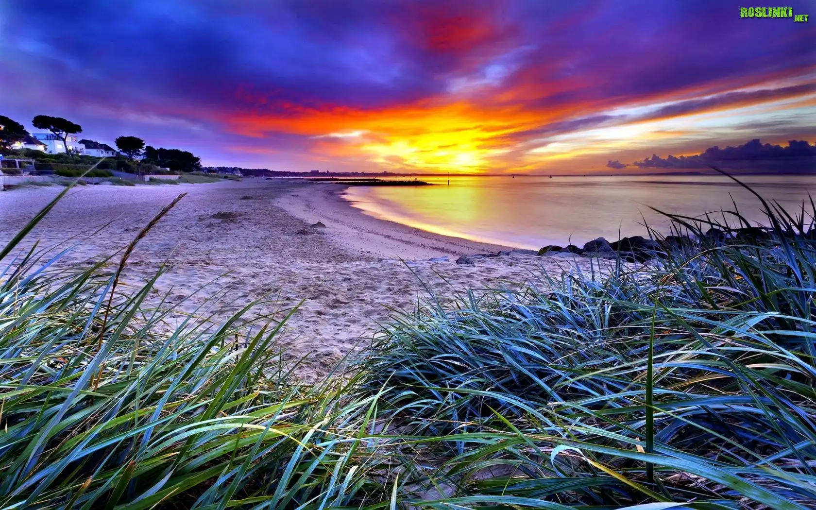 Rośliny: Zachód, Jezioro, Plaża, Trawa