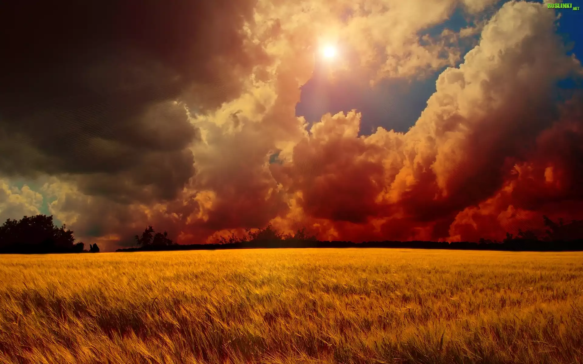 Rośliny: Zachód, Słońca, Chmury, Pola, Zboża