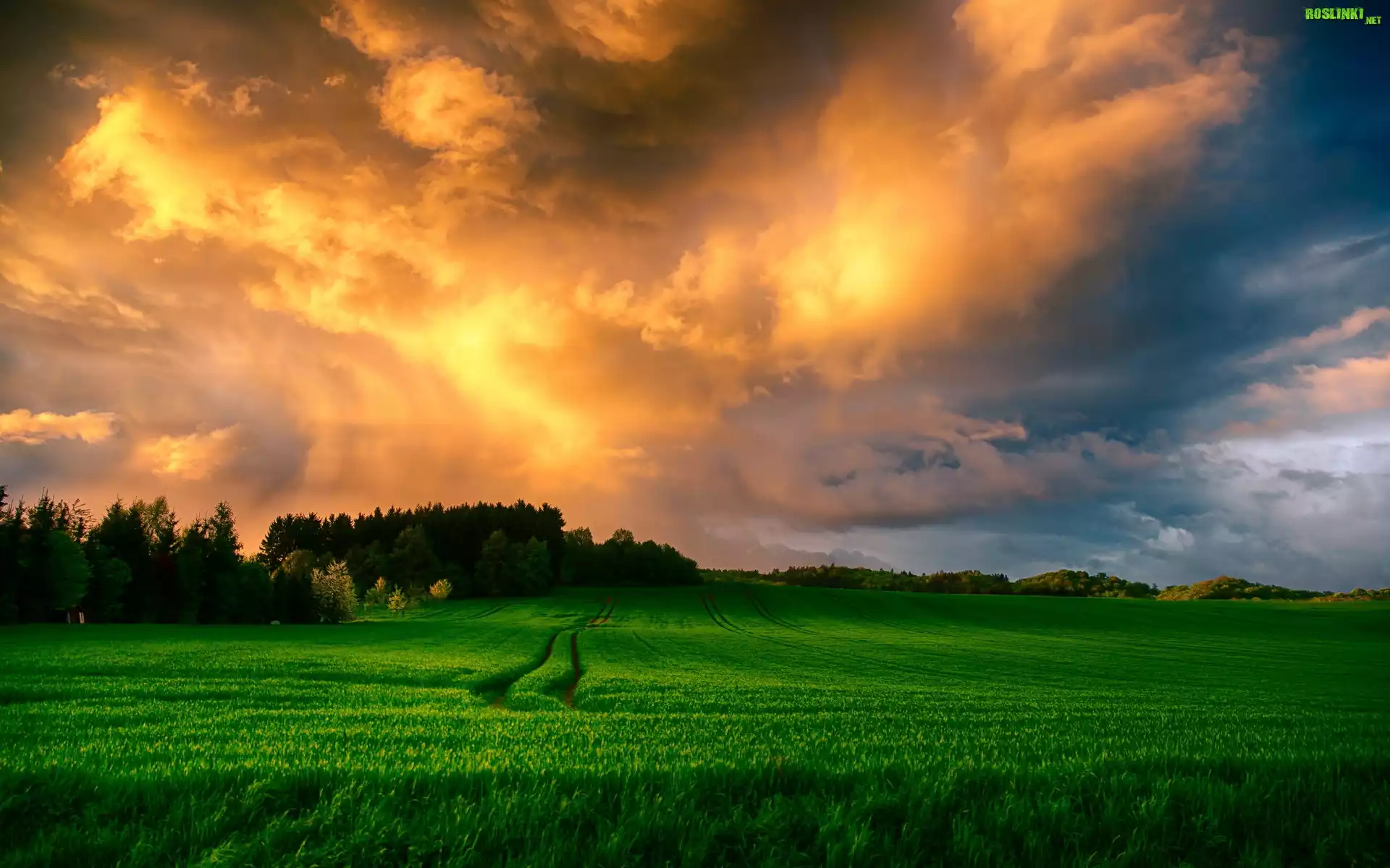 Rośliny: Zachód, Słońca, Pola, Trawy
