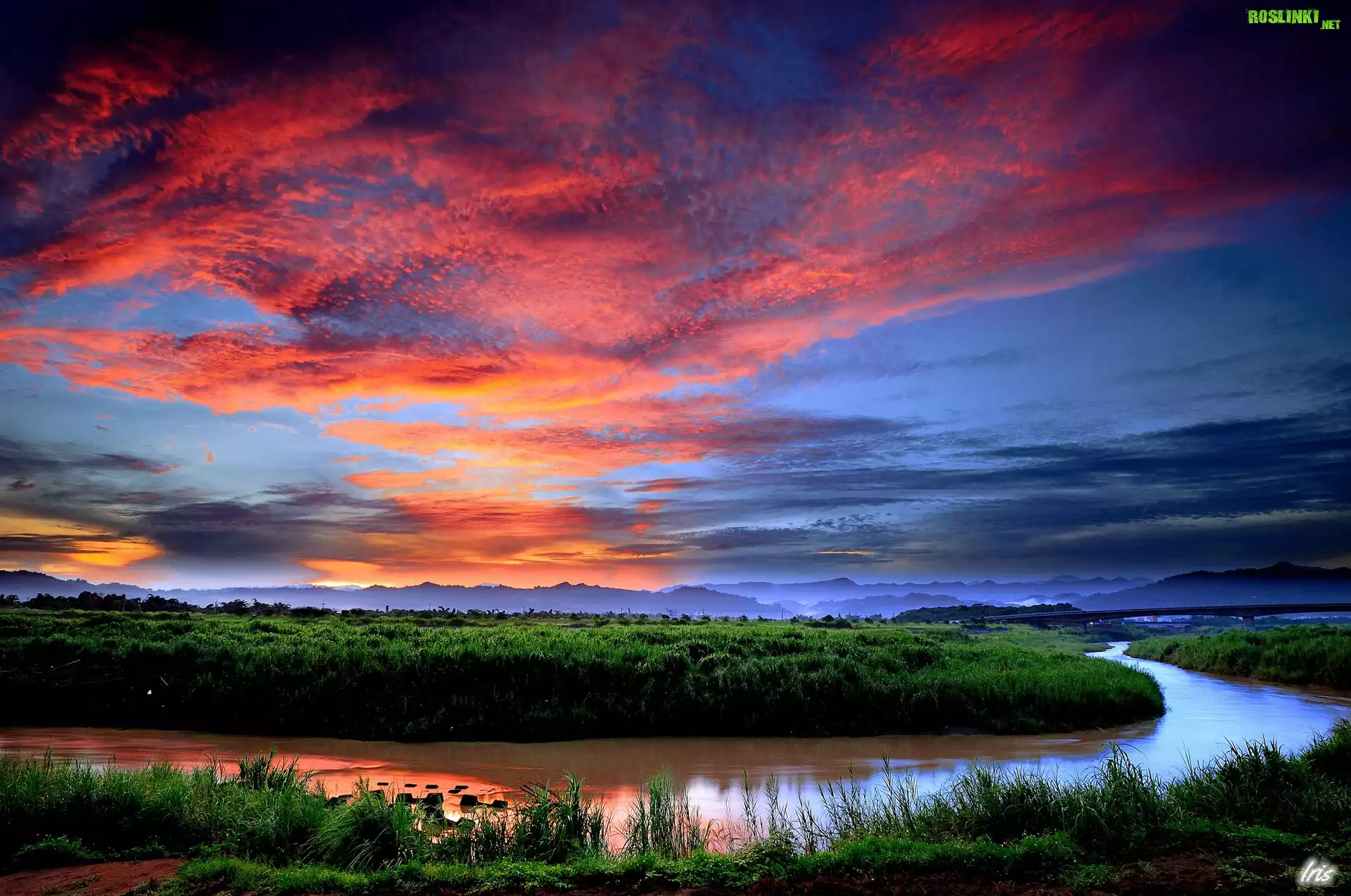 Rośliny: Zachód, Słońca, Rzeka, Rośliny