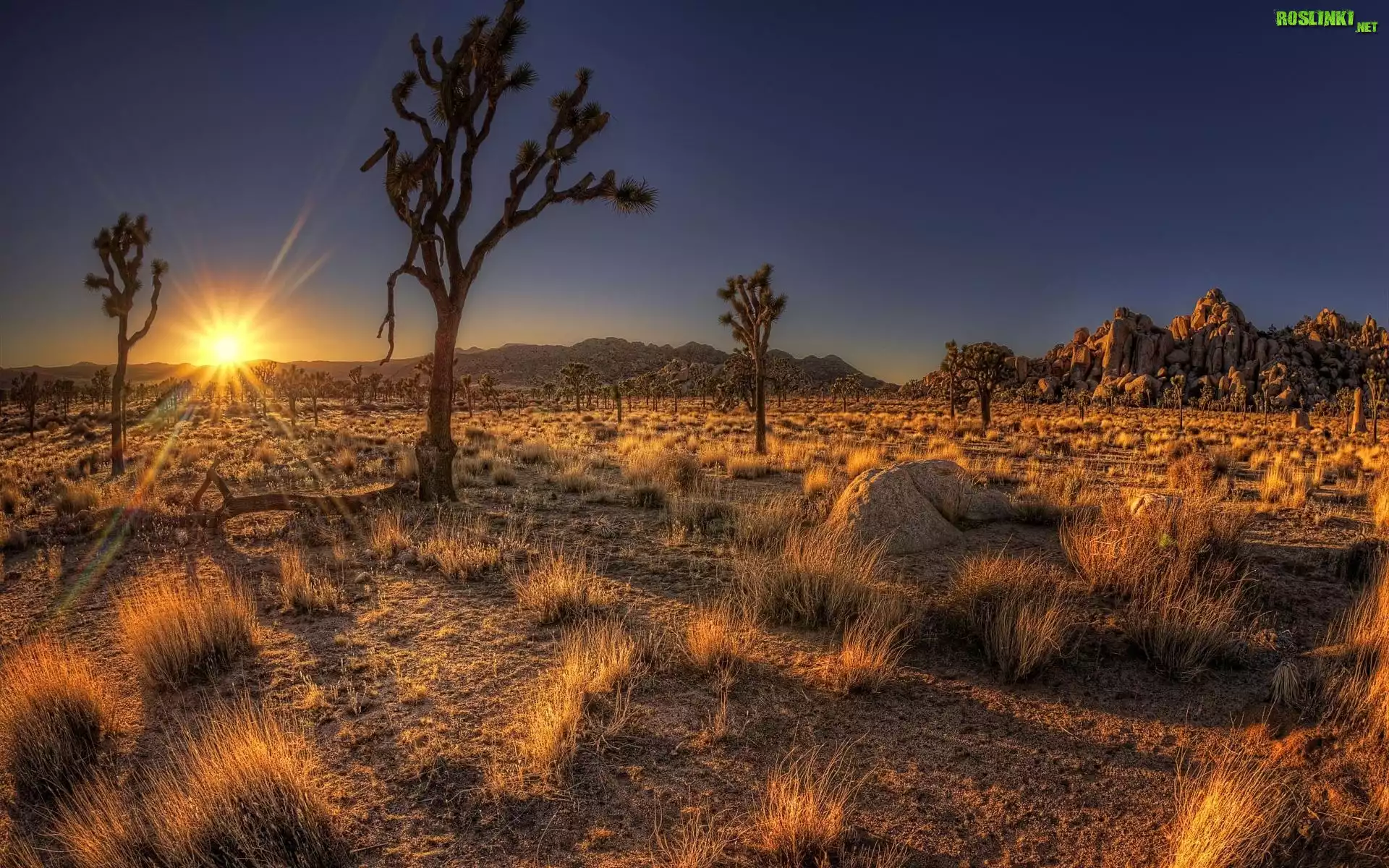 Rośliny: Zachód, Słońca, Promienie, Skały, Drzewa