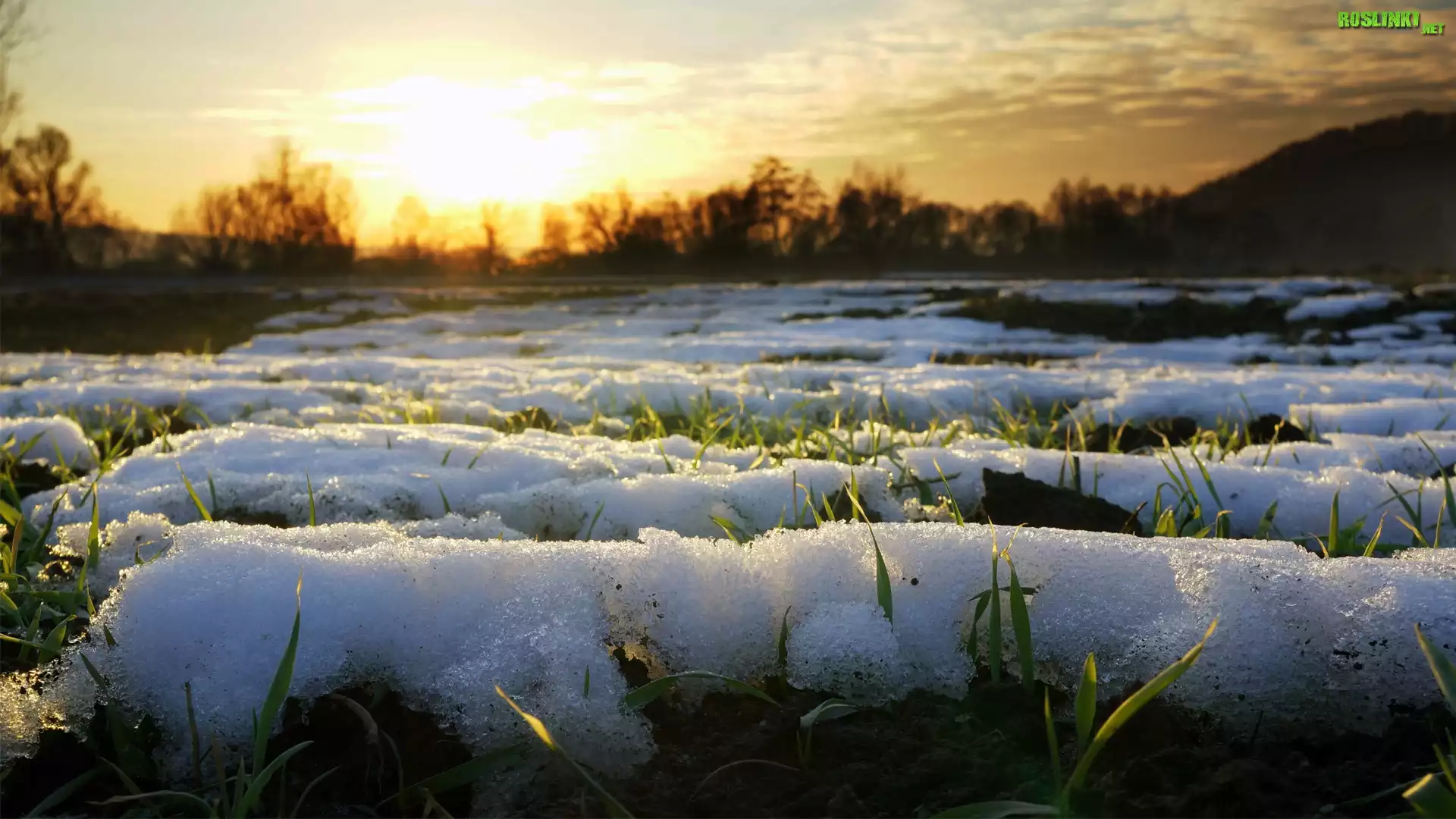Rośliny: Zachód, Słońca, Trawa, Topniejący, Śnieg