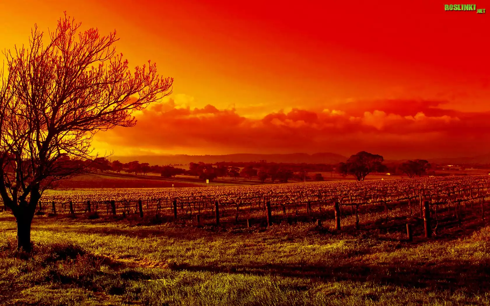 Rośliny: Zachód, Słońca, Farma, Trawa, Drzewo