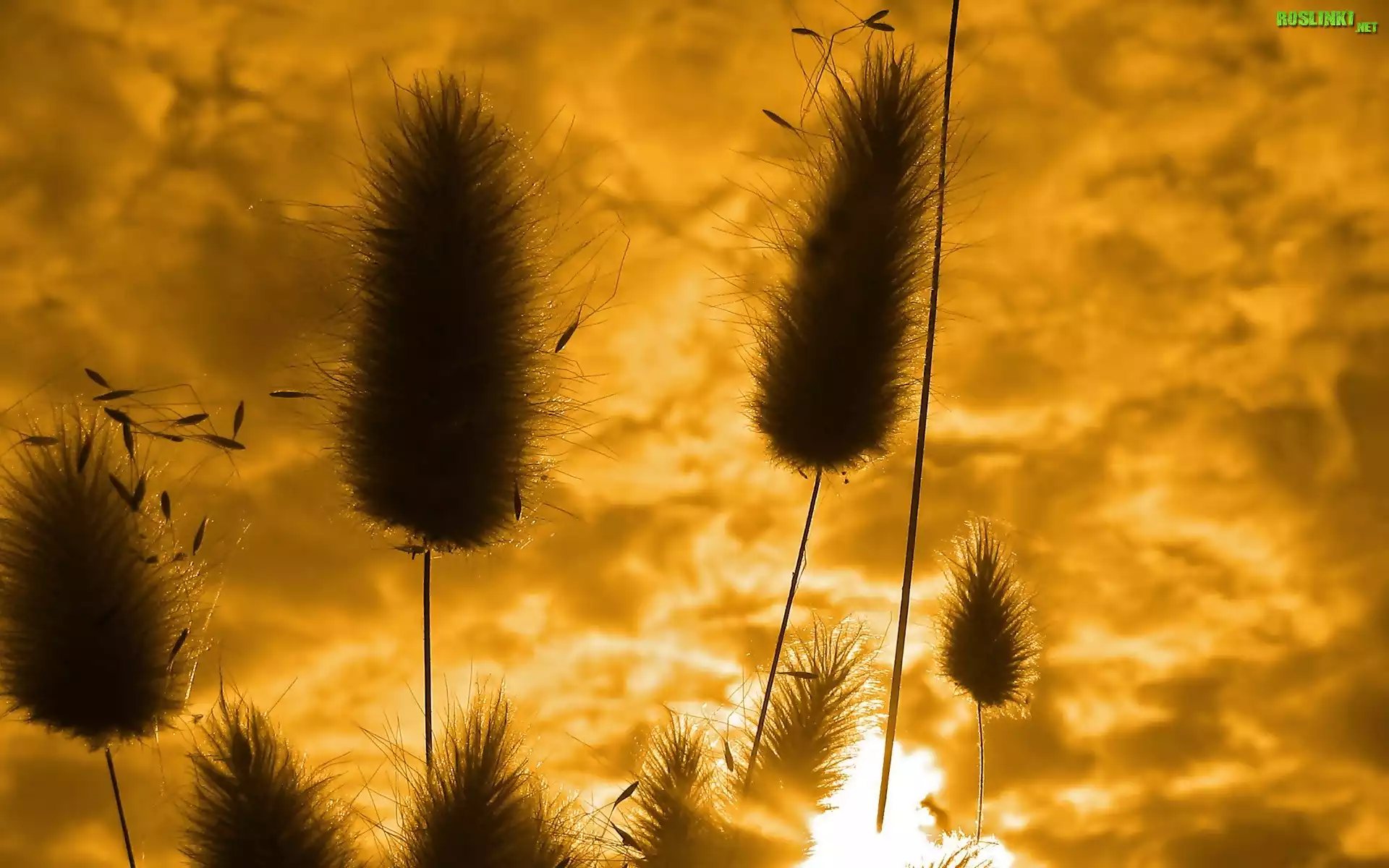 Rośliny: Zachód, Słońca, Trawa, Chmury