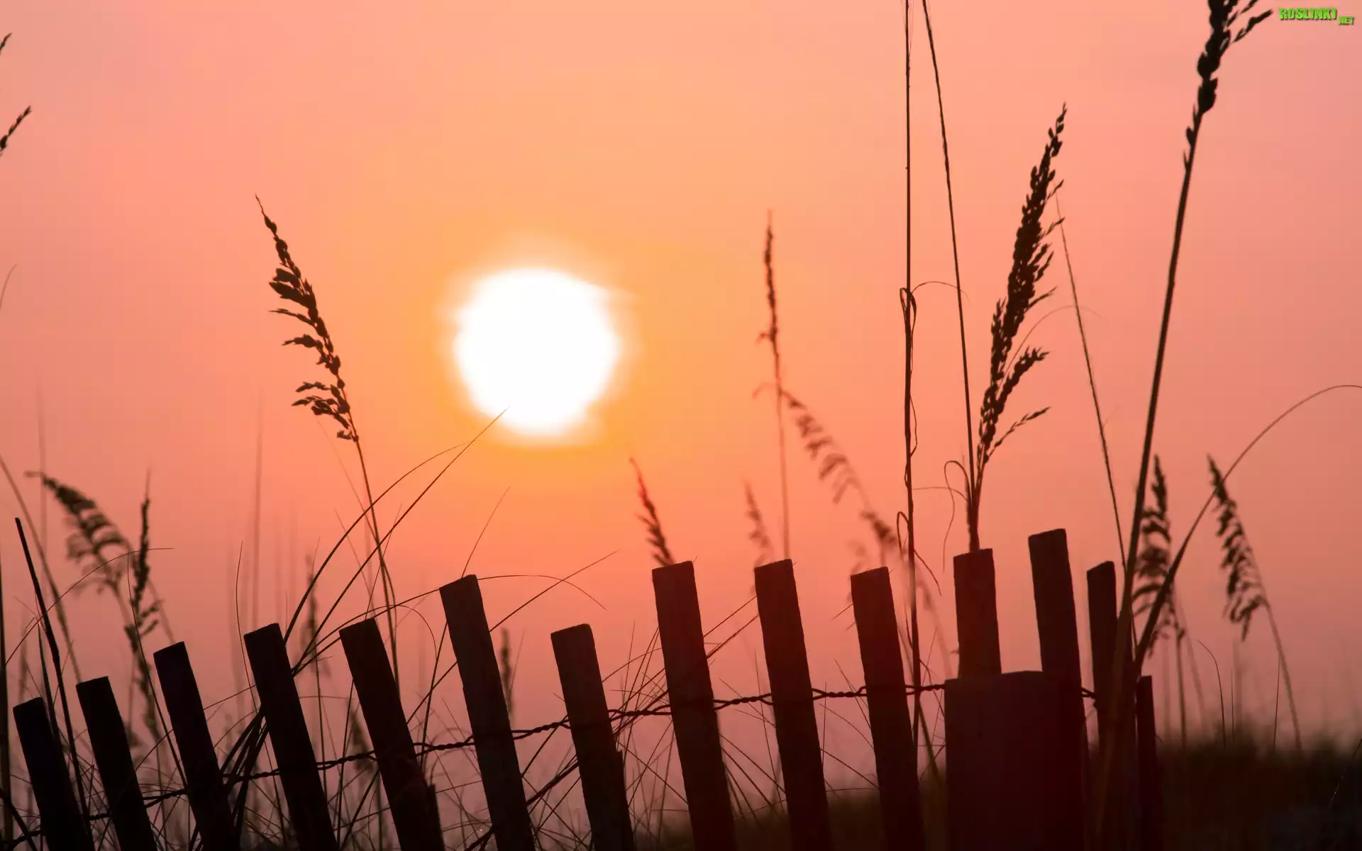 Rośliny: Zachód, Słońca, Trawy, Płotek