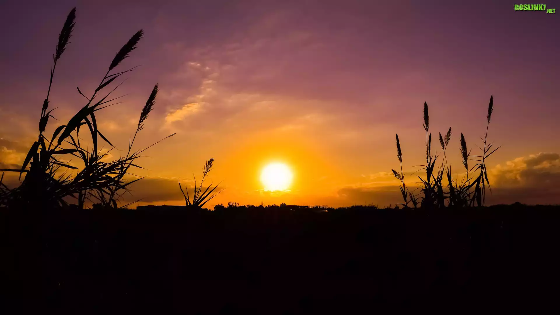 Rośliny: Zachód słońca, Trzciny, Trawa