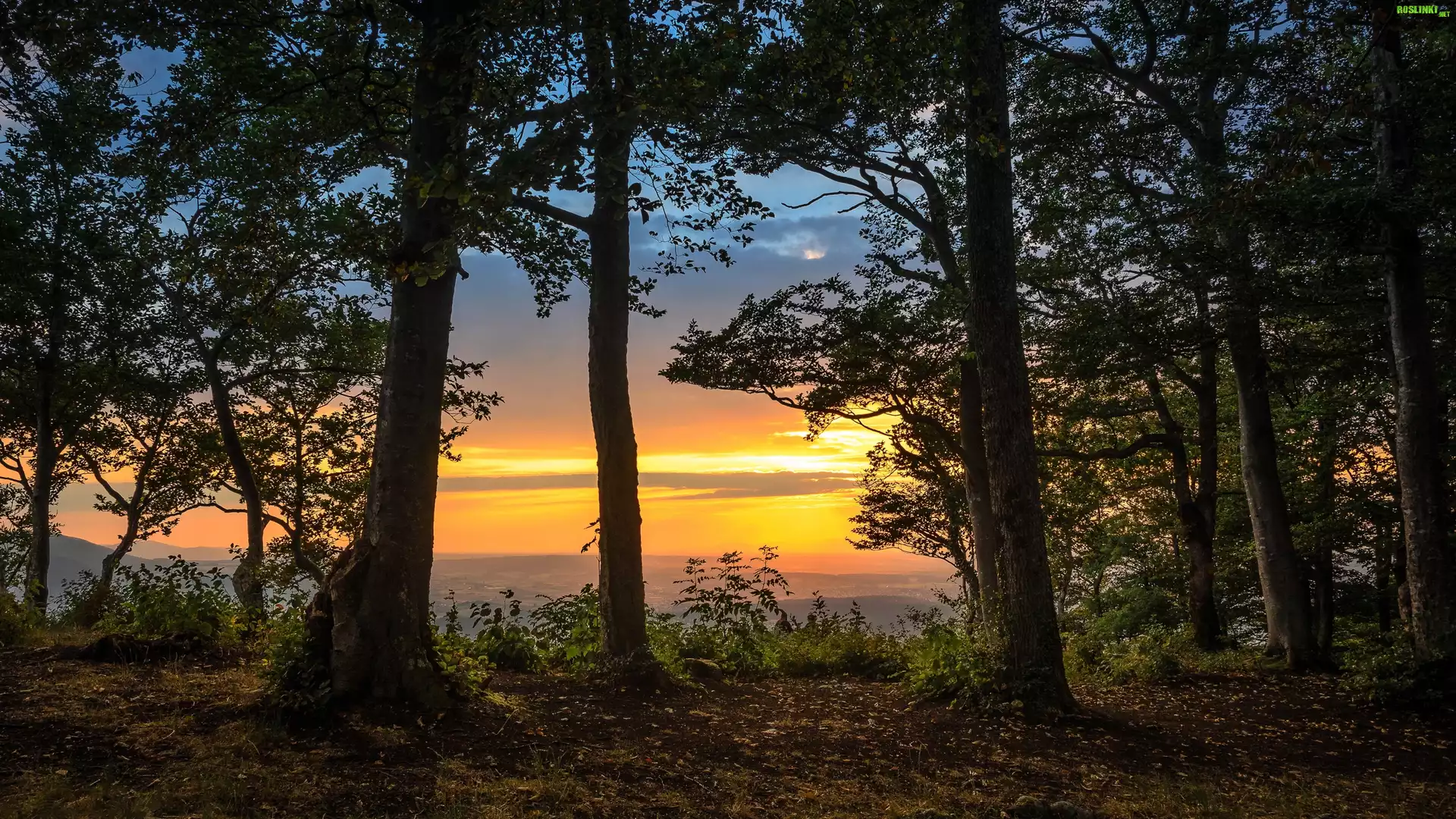 Rośliny: Zachód, Słońca, Wzgórza, Drzewa