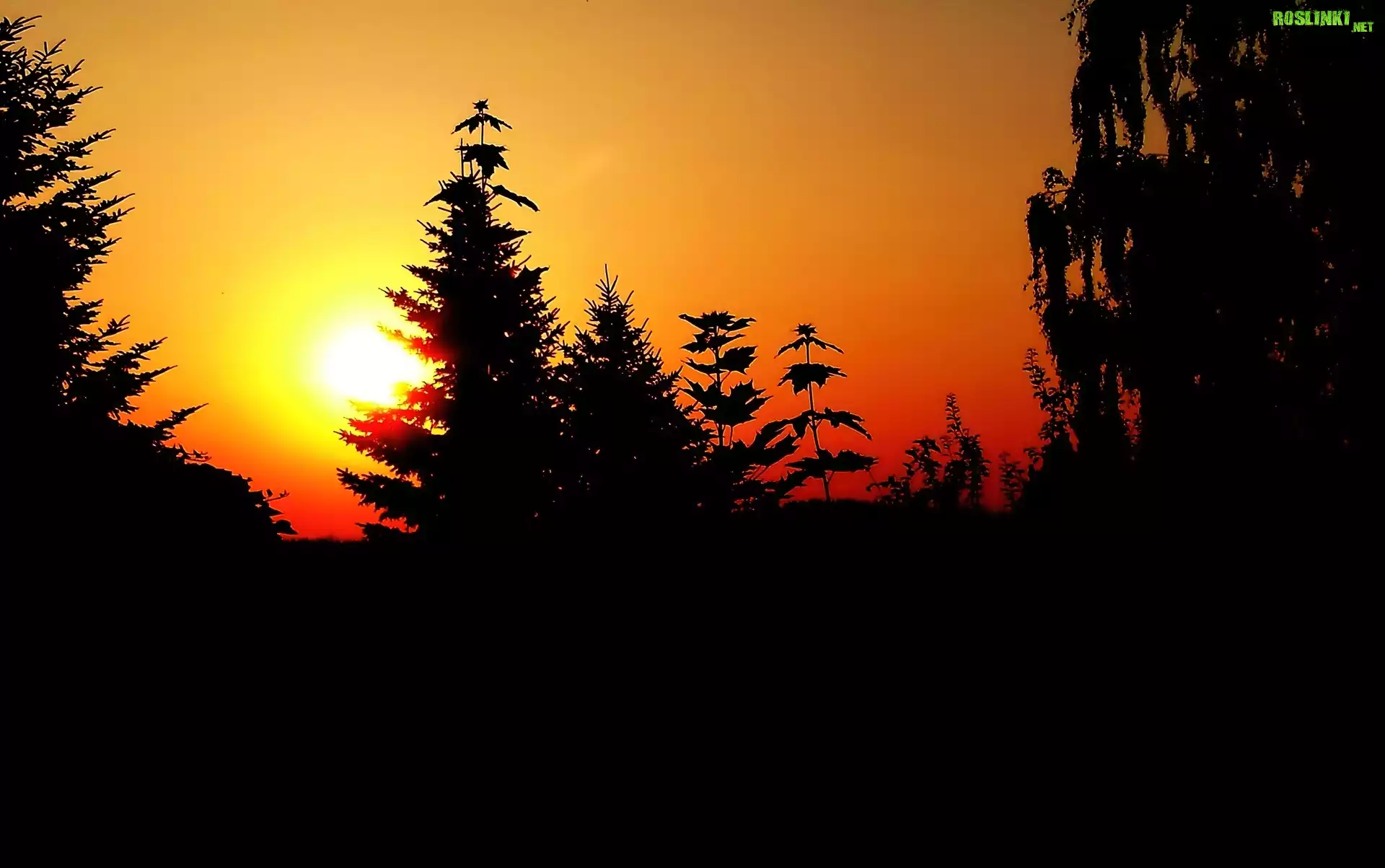 Rośliny: Zachodzące, Nad, Drzewami, Słońce