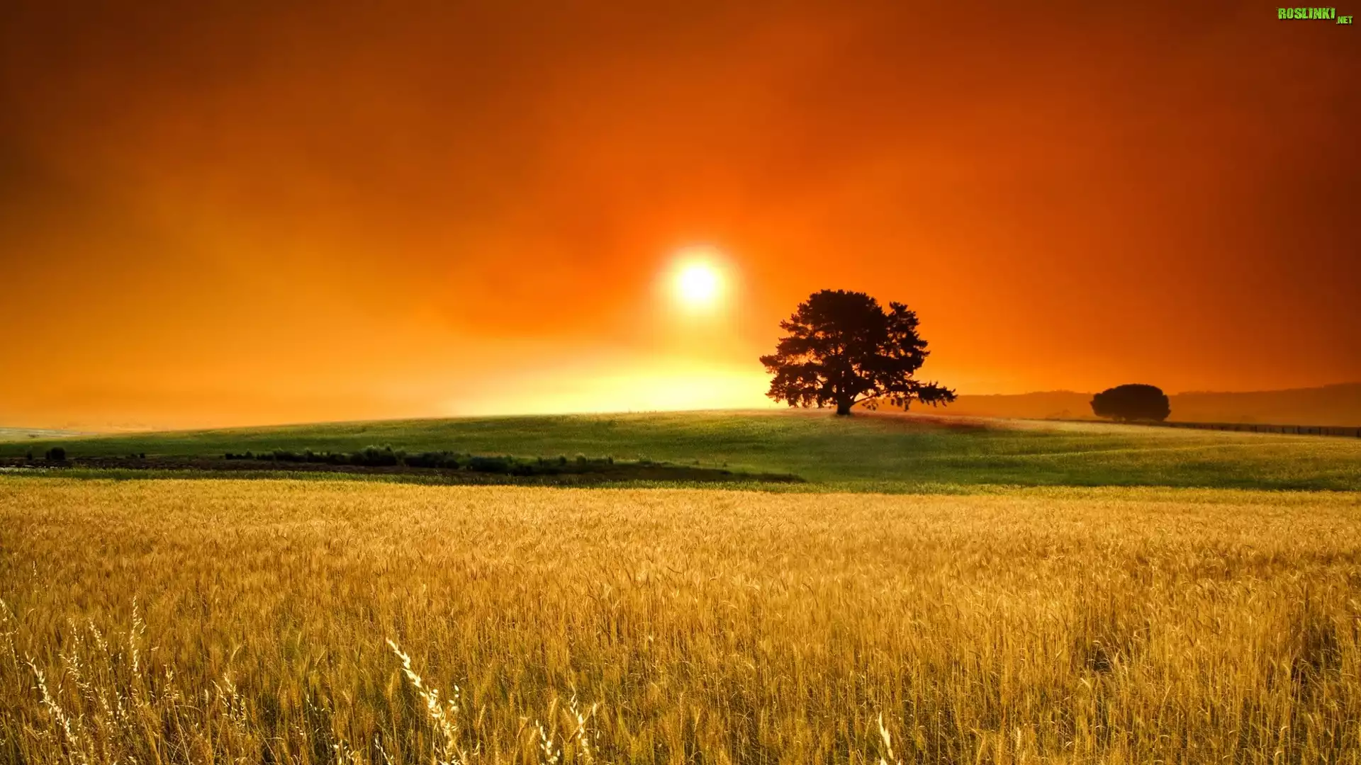 Rośliny: Łany, Zbóż, Zachodzące, Słońce
