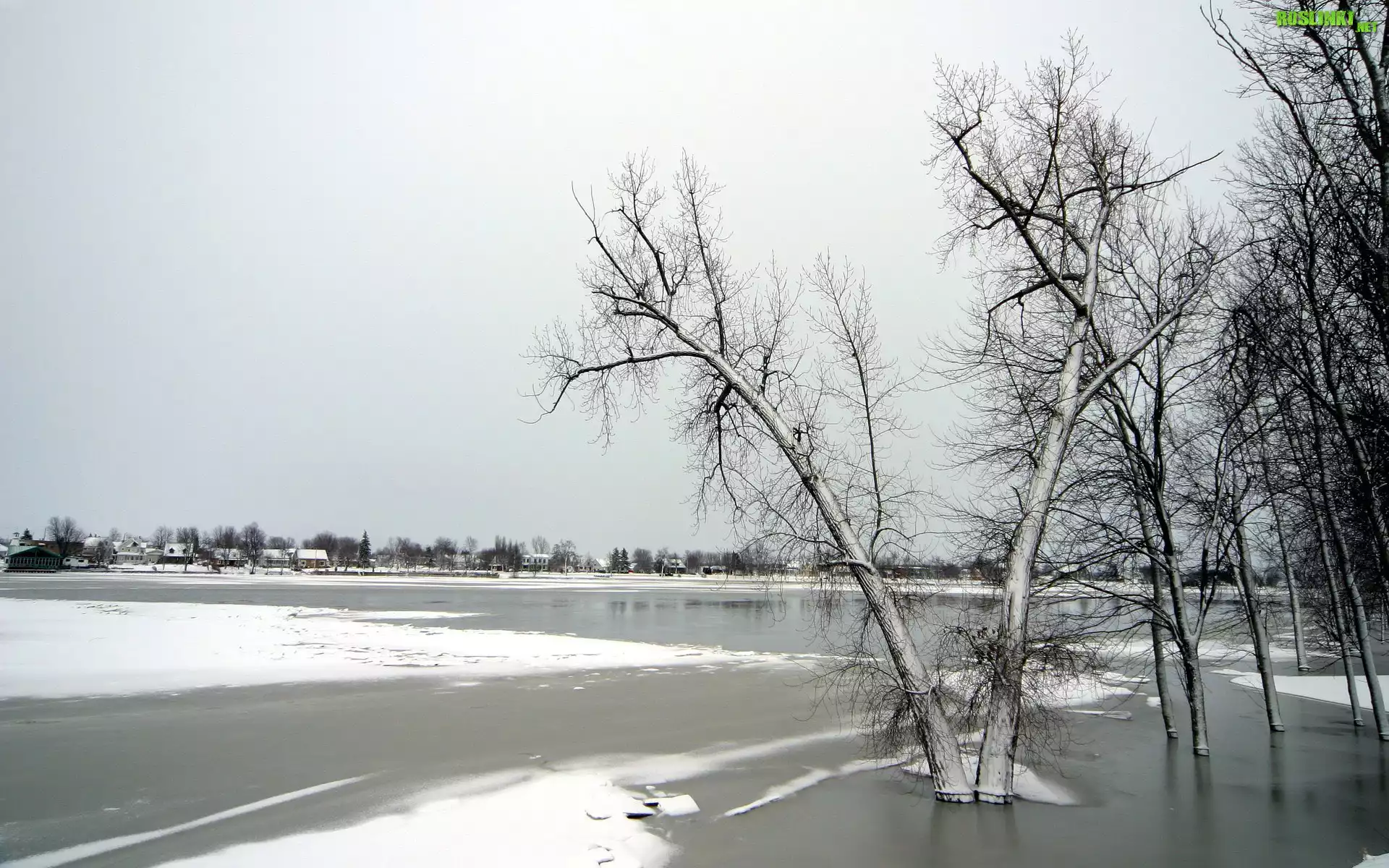 Rośliny: Zamarznięte, Jezioro, Drzewa, W, Dali, Domy