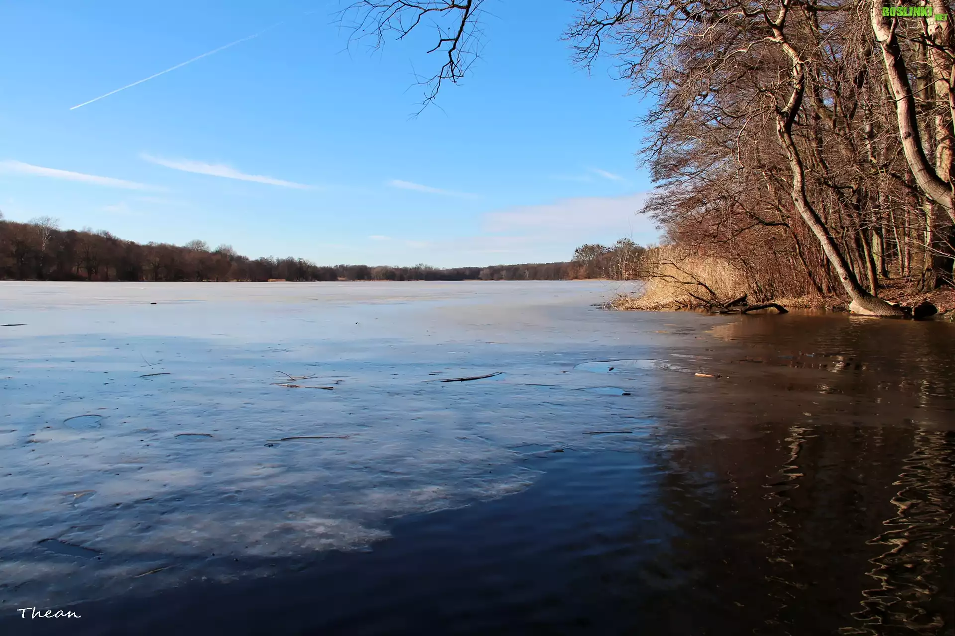 Zamarznięte, Jezioro, Błękitne, Niebo, Przedwiośnie