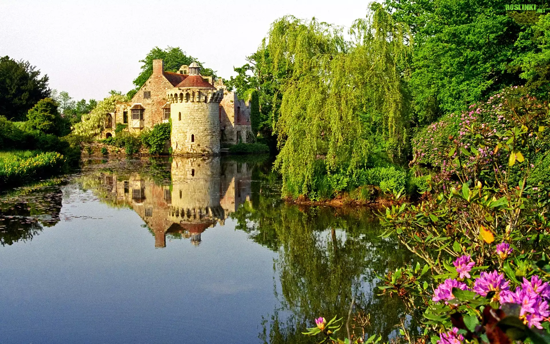 Rośliny: Zamek, Jeziorko, Kwiatki, Drzewa, Kent, Anglia