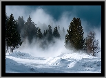 Zima, Droga, Drzewa, Zamieć, Grafika AI