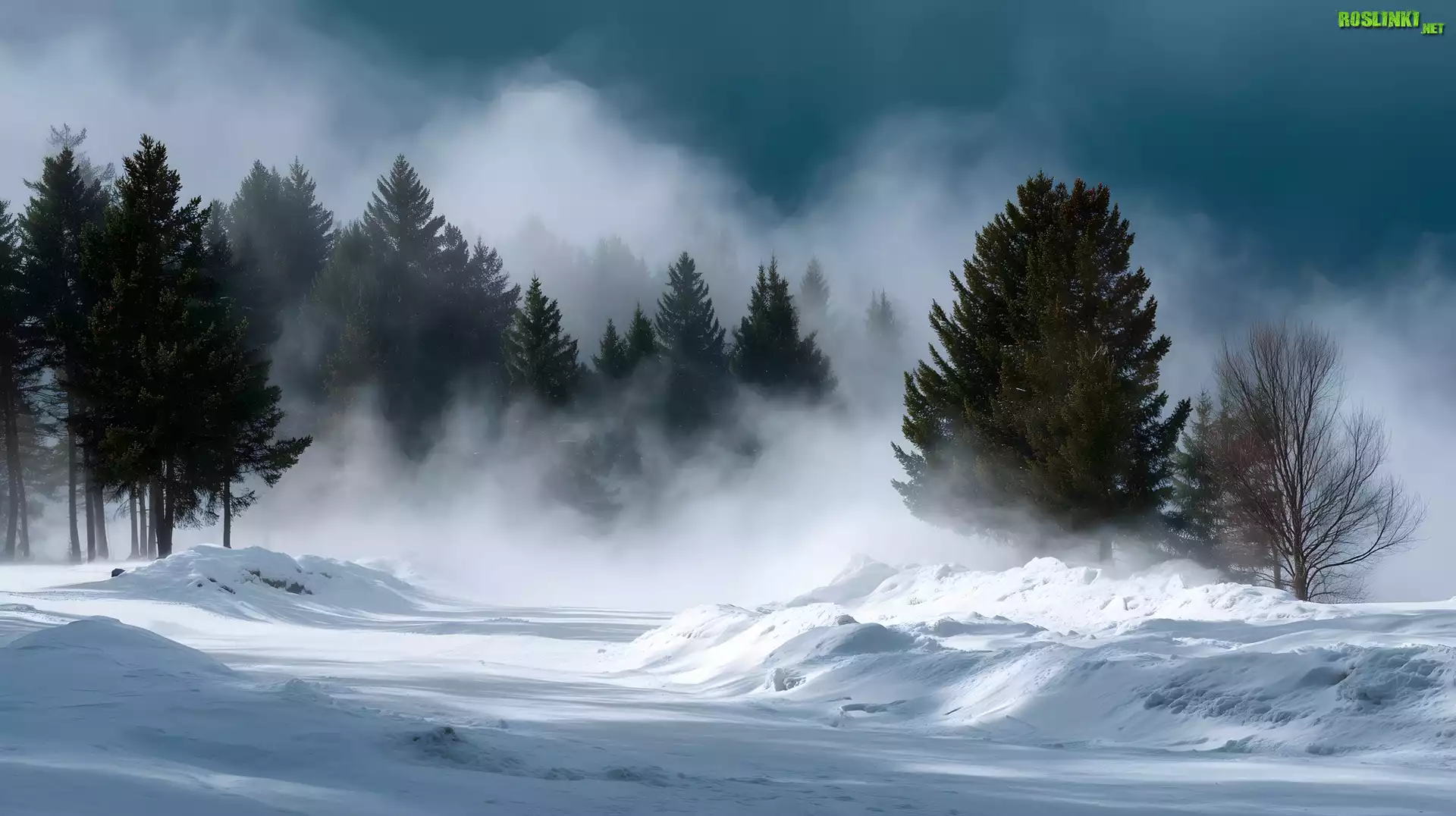 Rośliny: Zima, Droga, Drzewa, Zamieć, Grafika AI