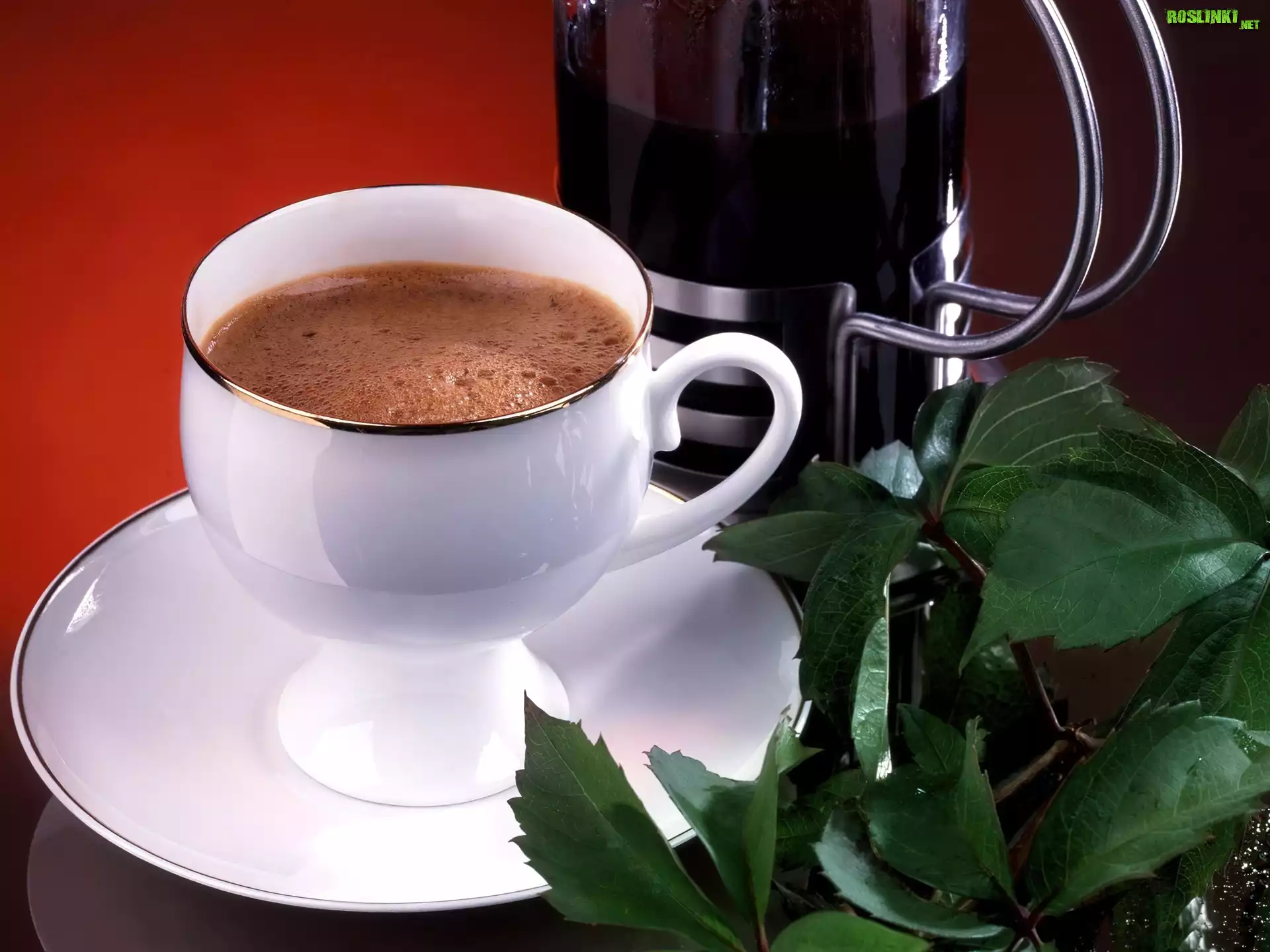 Rośliny: Zaparzacz, Filiżanka, Kawa, Liście