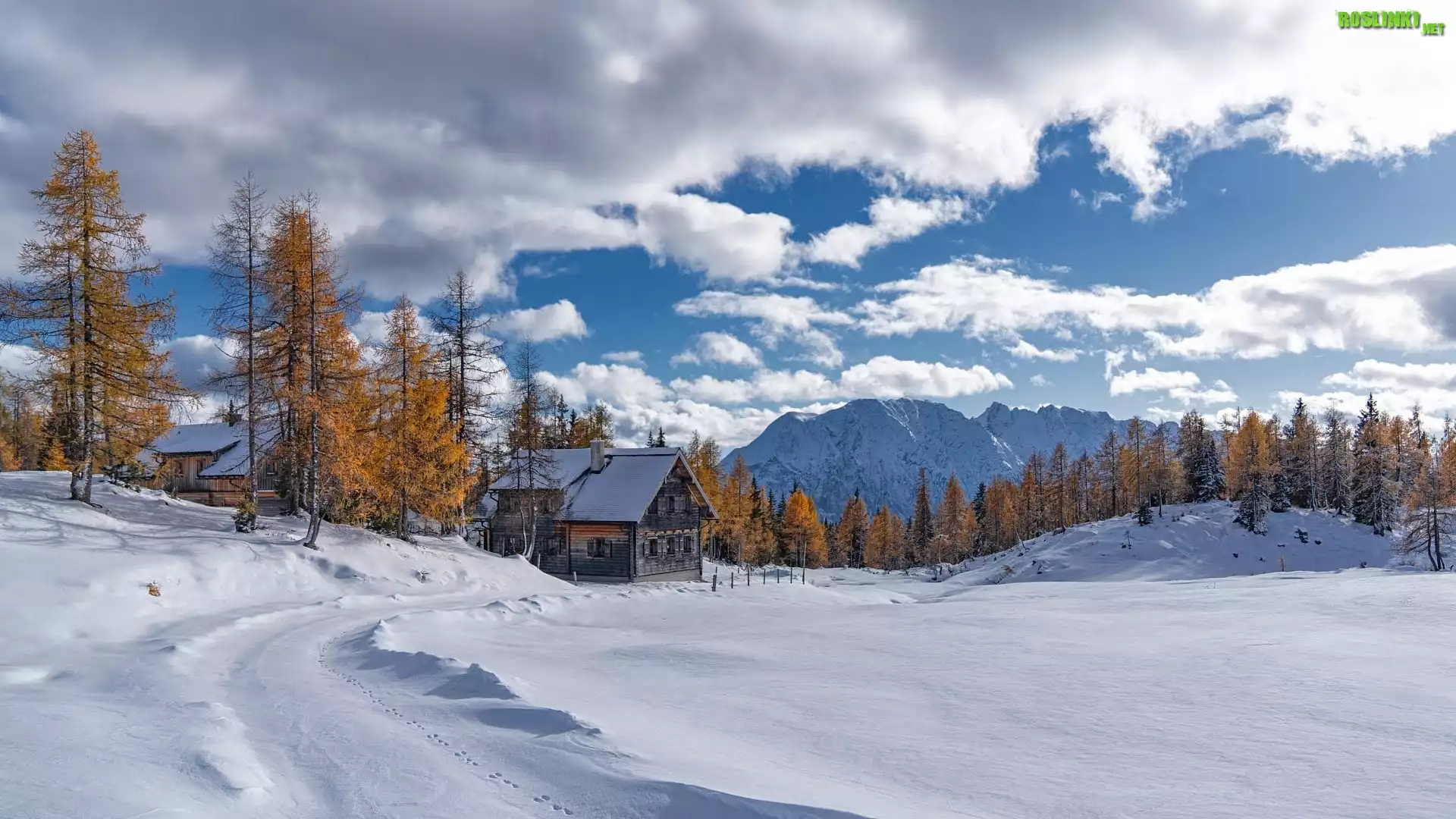 Rośliny: Zima, Góry, Domy, Zaśnieżona, Droga, Drzewa