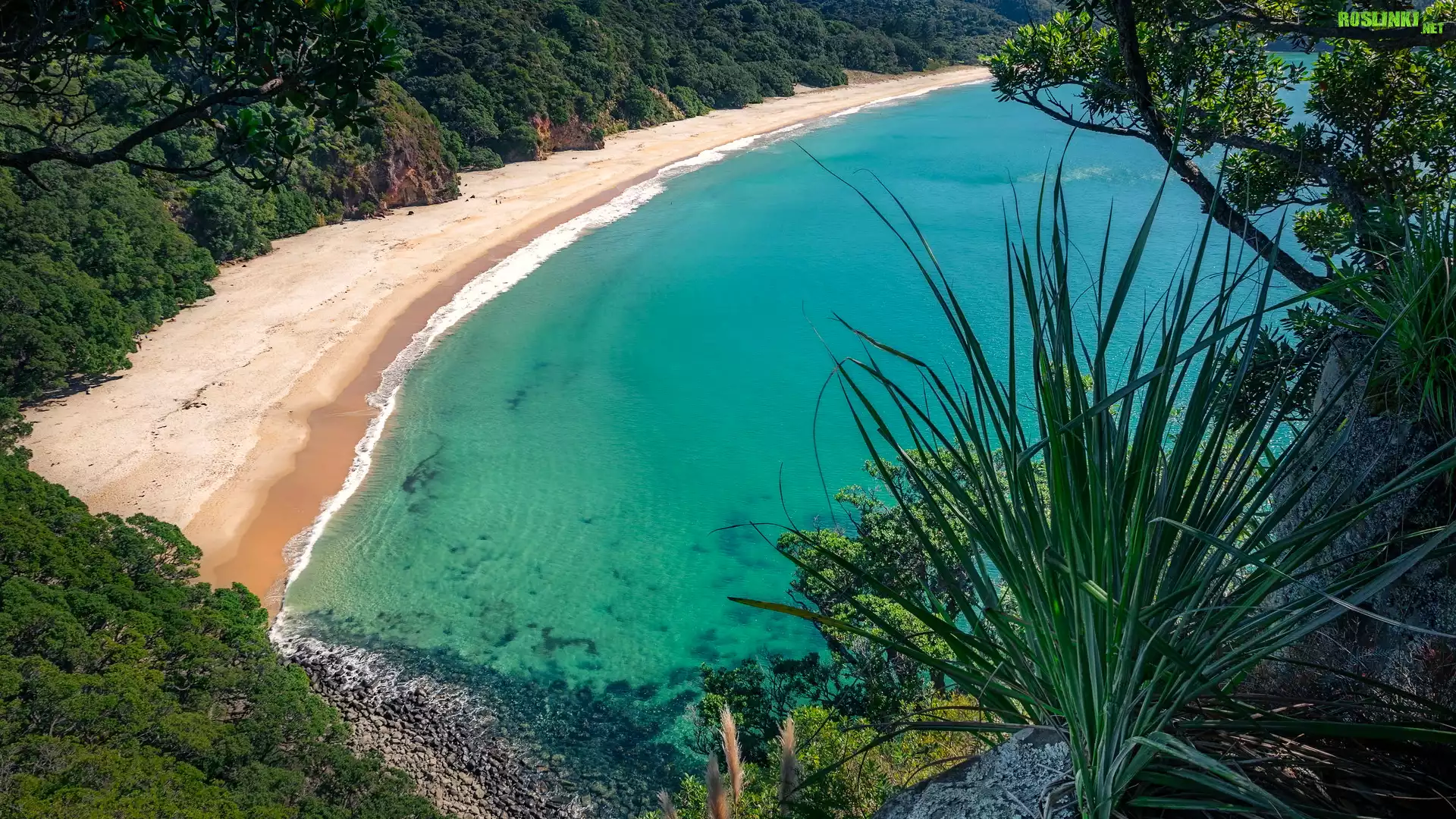 Plaża, New Chums Beach, Wybrzeże, Zatoka, Wainuiototo Bay, Rośliny, Whangapoua, Nowa Zelandia