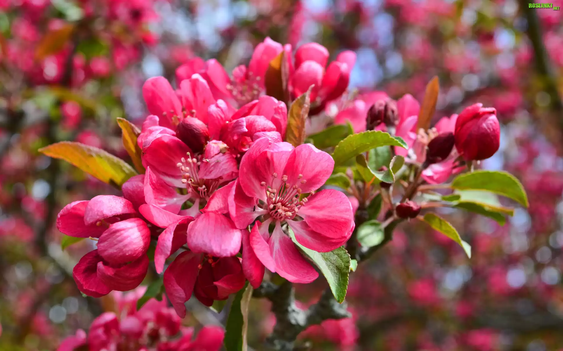 Rośliny: Zbliżenie, Różowe, Kwiaty, Pąki, Drzewo owocowe