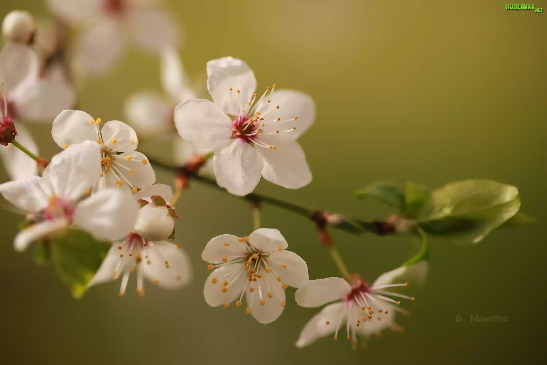 Rośliny: Drzewo owocowe, Gałązka, Zbliżenie, Białe, Kwiaty