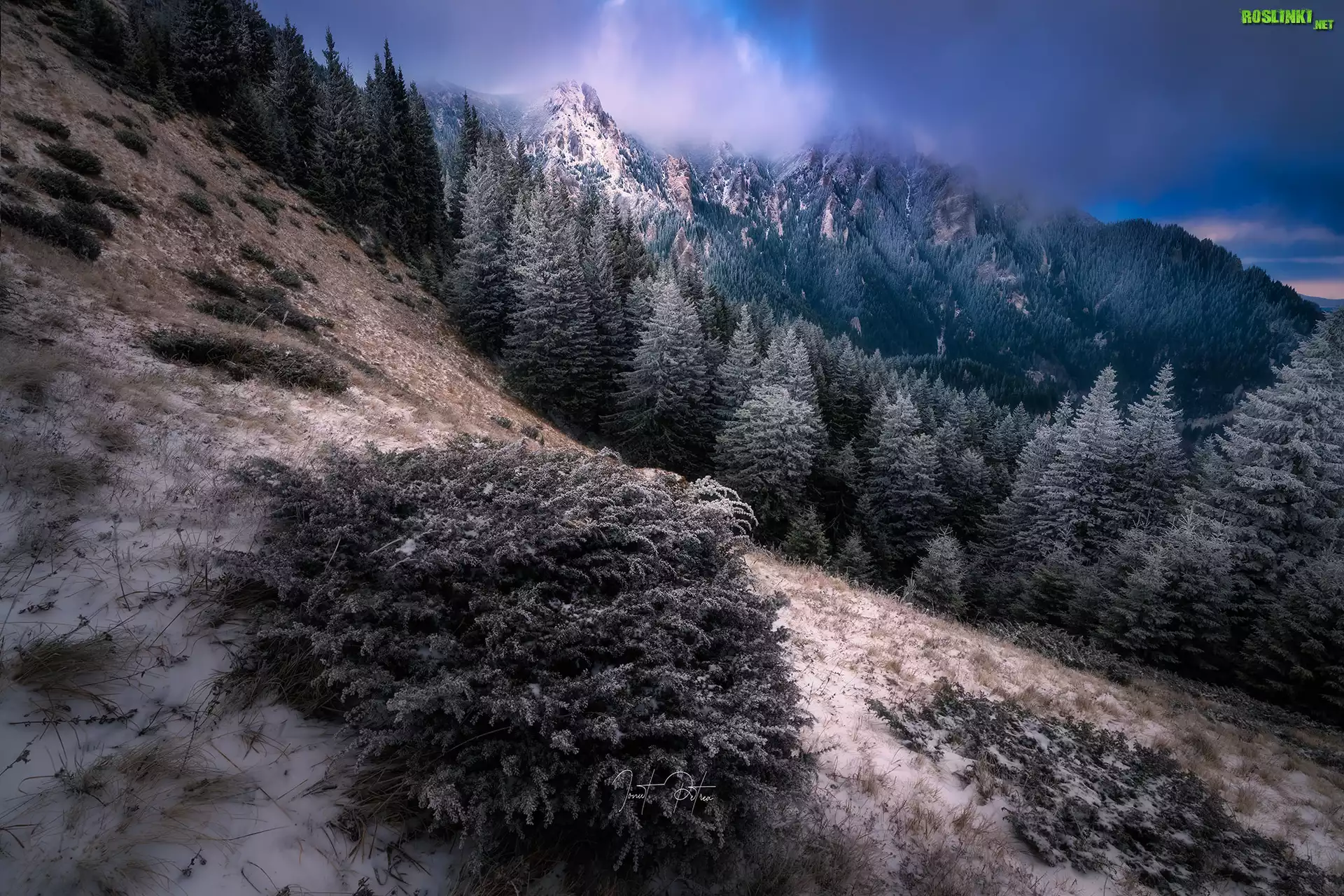 Rośliny: Góry, Zbocze, Drzewa, Pierwszy, Śnieg