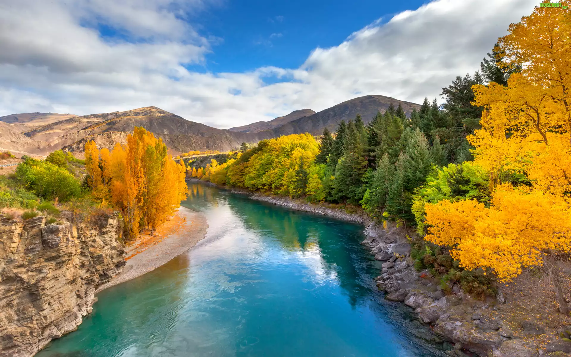 Rośliny: Nowa Zelandia, Queenstown, Rzeka Shotover, Góry, Jesień, Drzewa