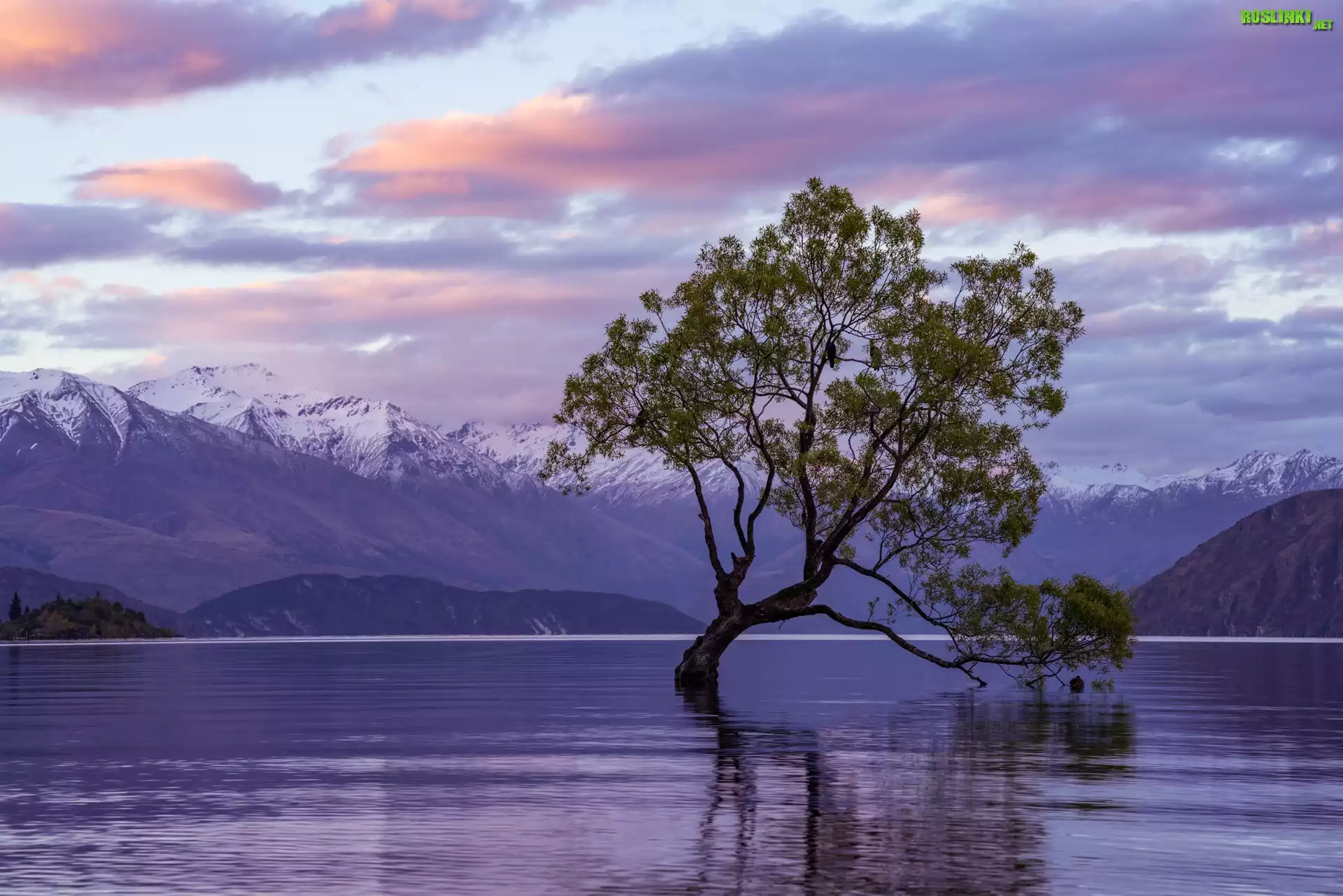 Rośliny: Nowa Zelandia, Jezioro Wanaka, Góry, Pochylone, Drzewo