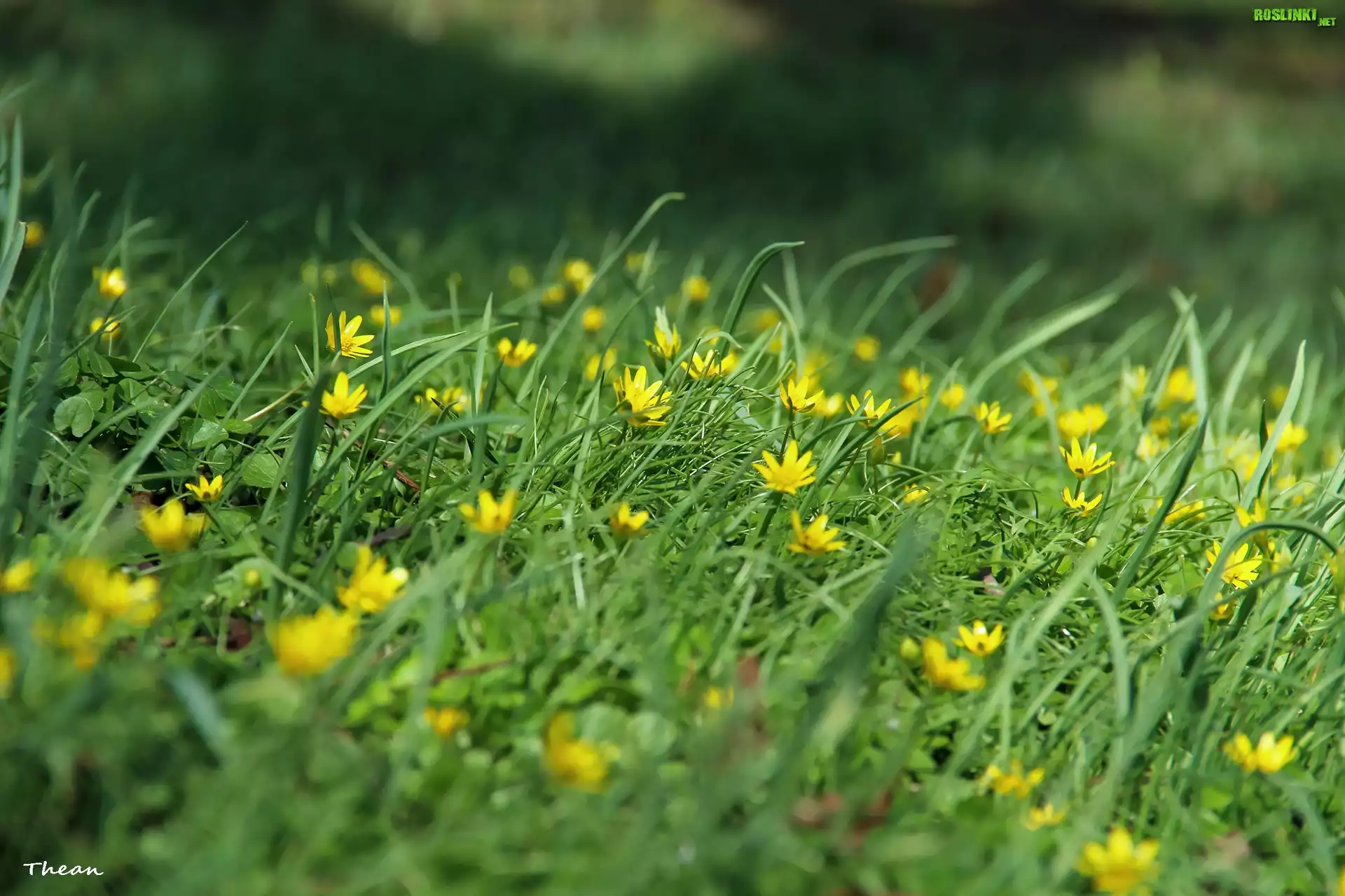 Rośliny: Ziarnopłon Wiosenny, Trawa, Żółte, Kwiaty