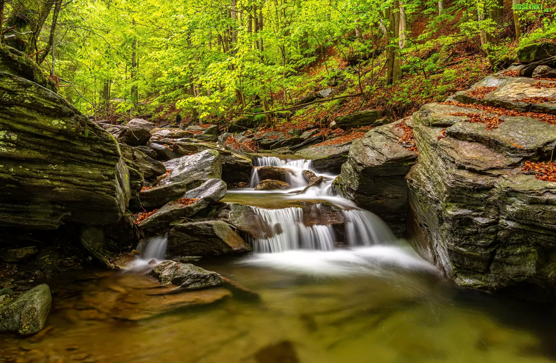 Rośliny: Las, Zielone, Drzewa, Rzeka, Skały