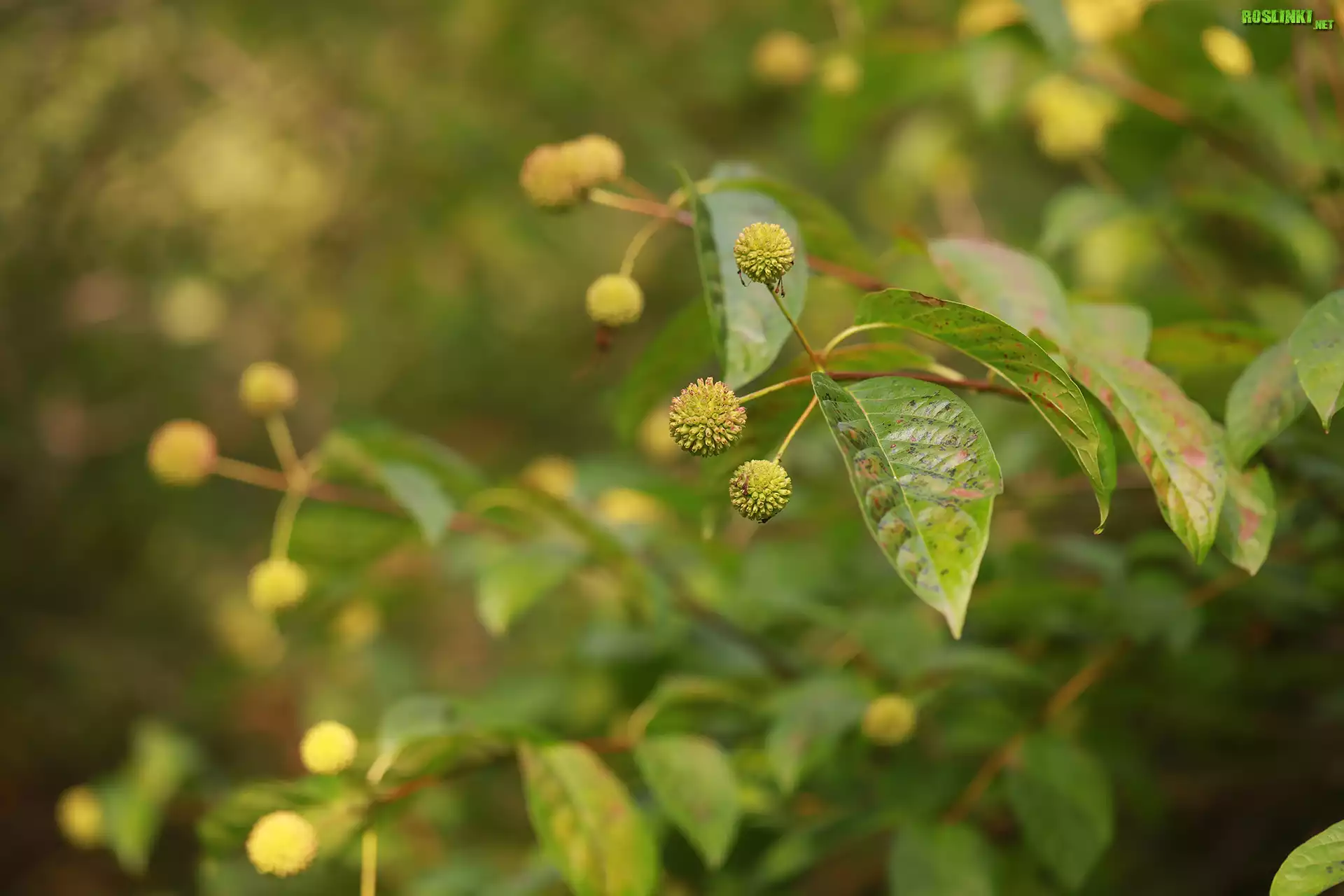 Rośliny: Guzikowiec, Krzew, Owoce, Zielone