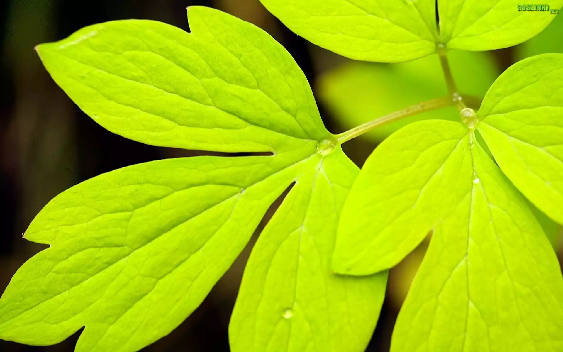 Zielone, Liście, Krople, Rosy