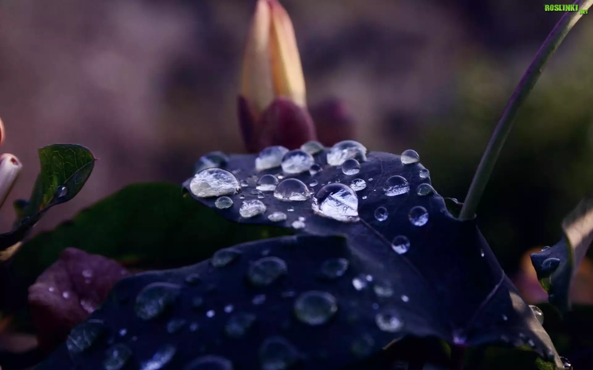 Rośliny: Ciemno, Zielony, Liść, Krople, Wody, Pąk, Kwiatowy