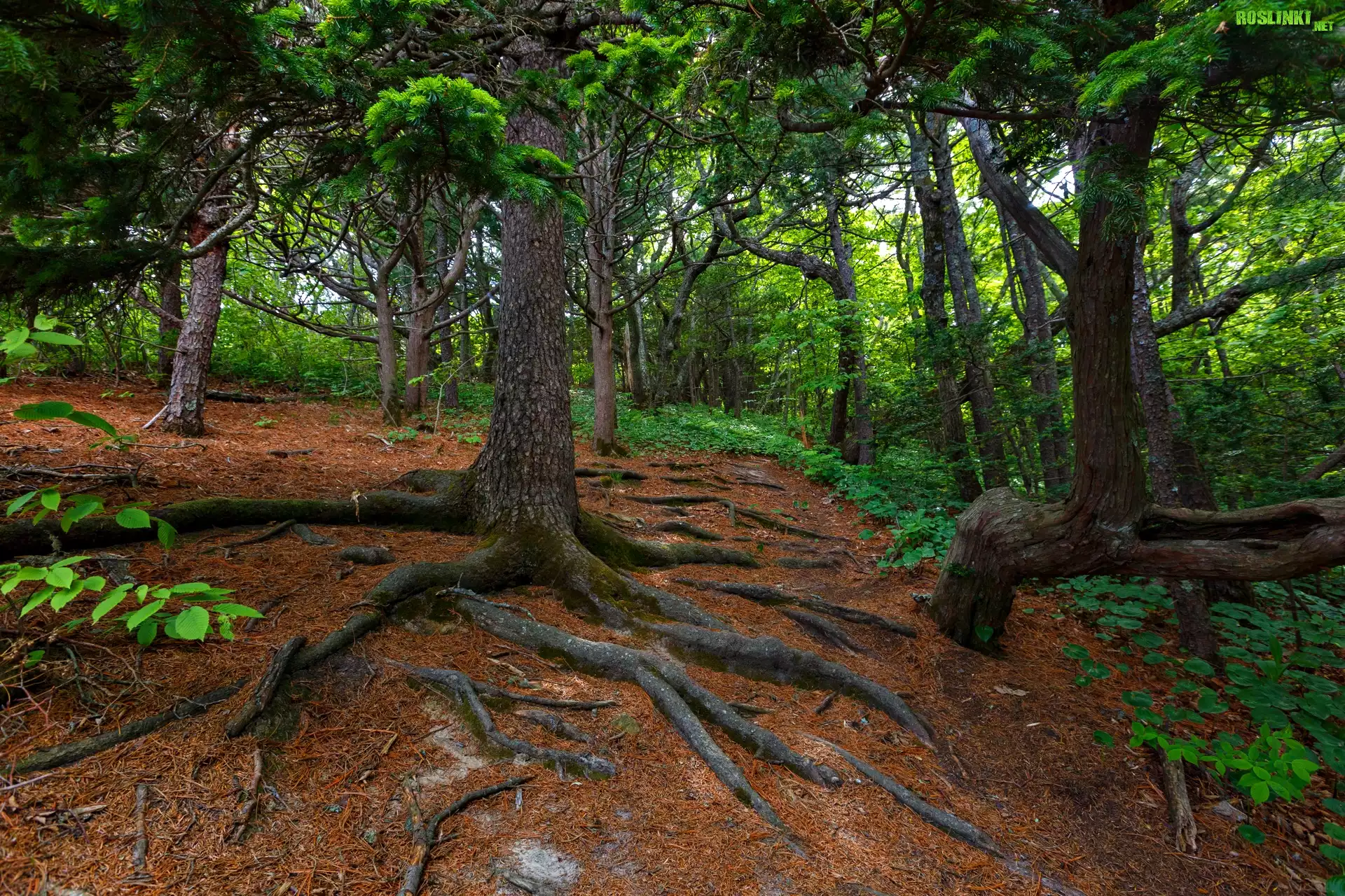 Rośliny: Zielony, Las, Drzewa, Wystające, Korzenie