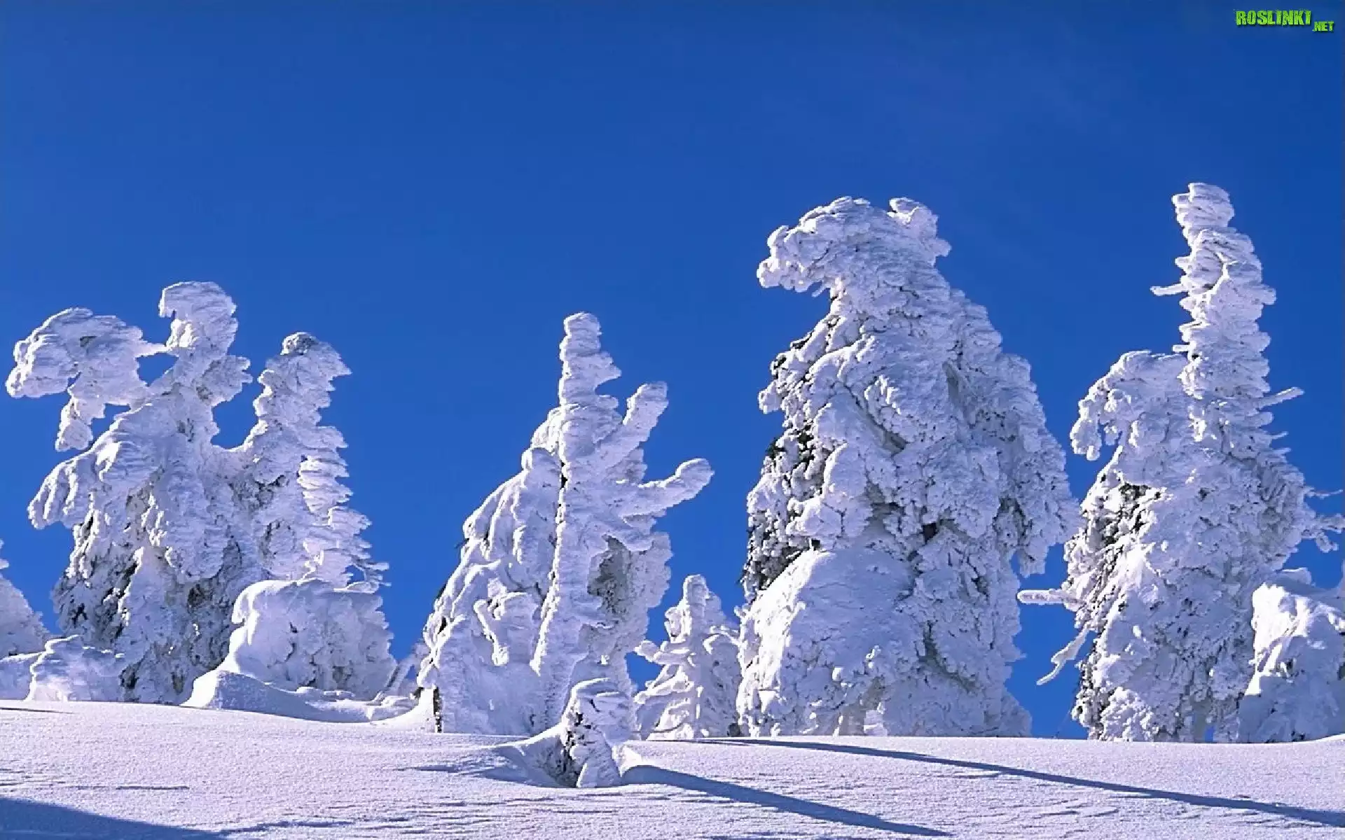 Rośliny: Zima, Ośnieżone, Drzewa, Błękitne, Niebo