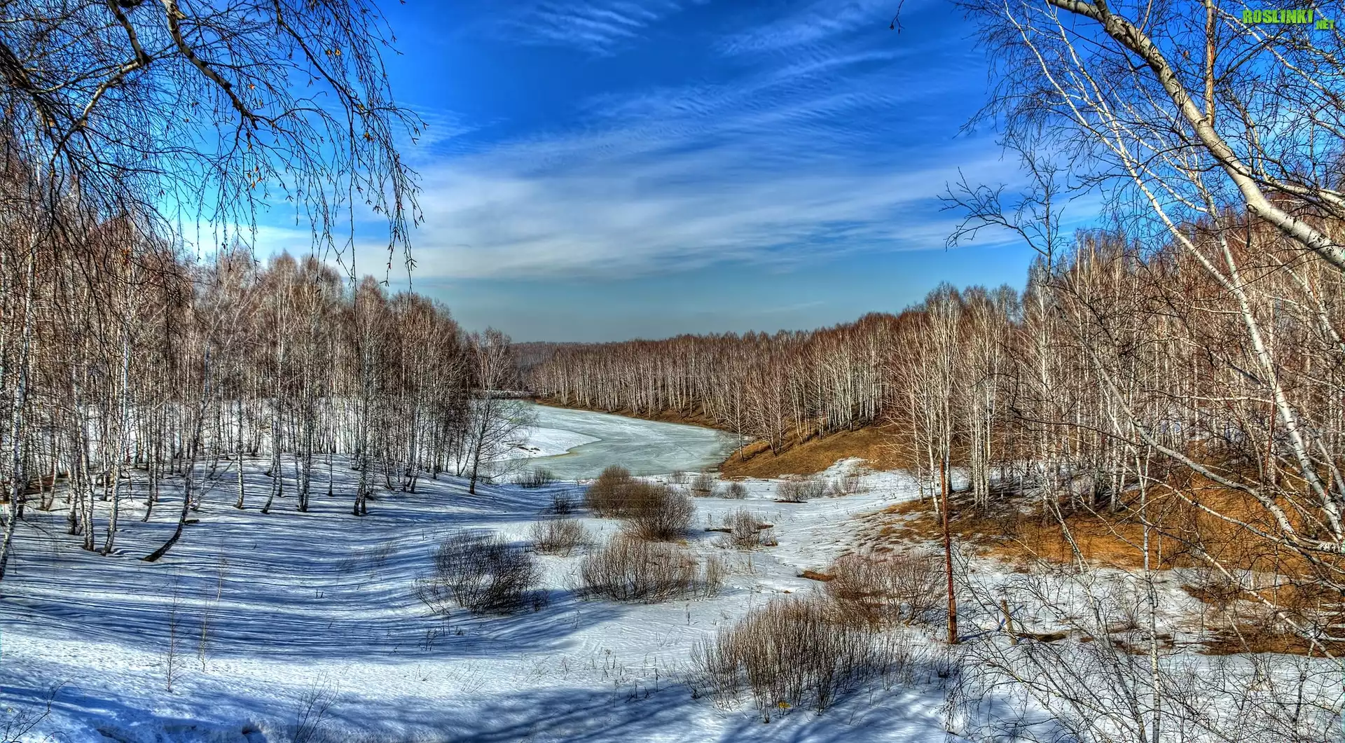 Rośliny: Zima, Las, Brzozy, Rzeka