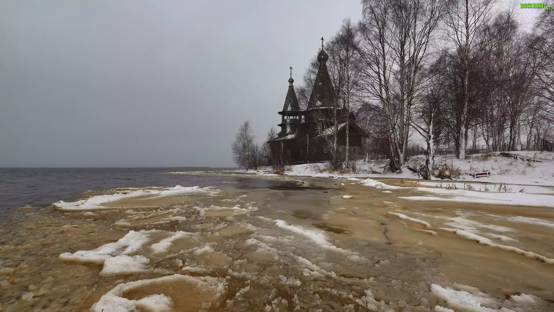 Rośliny: Zima, Jezioro, Cerkiew, Drzewa