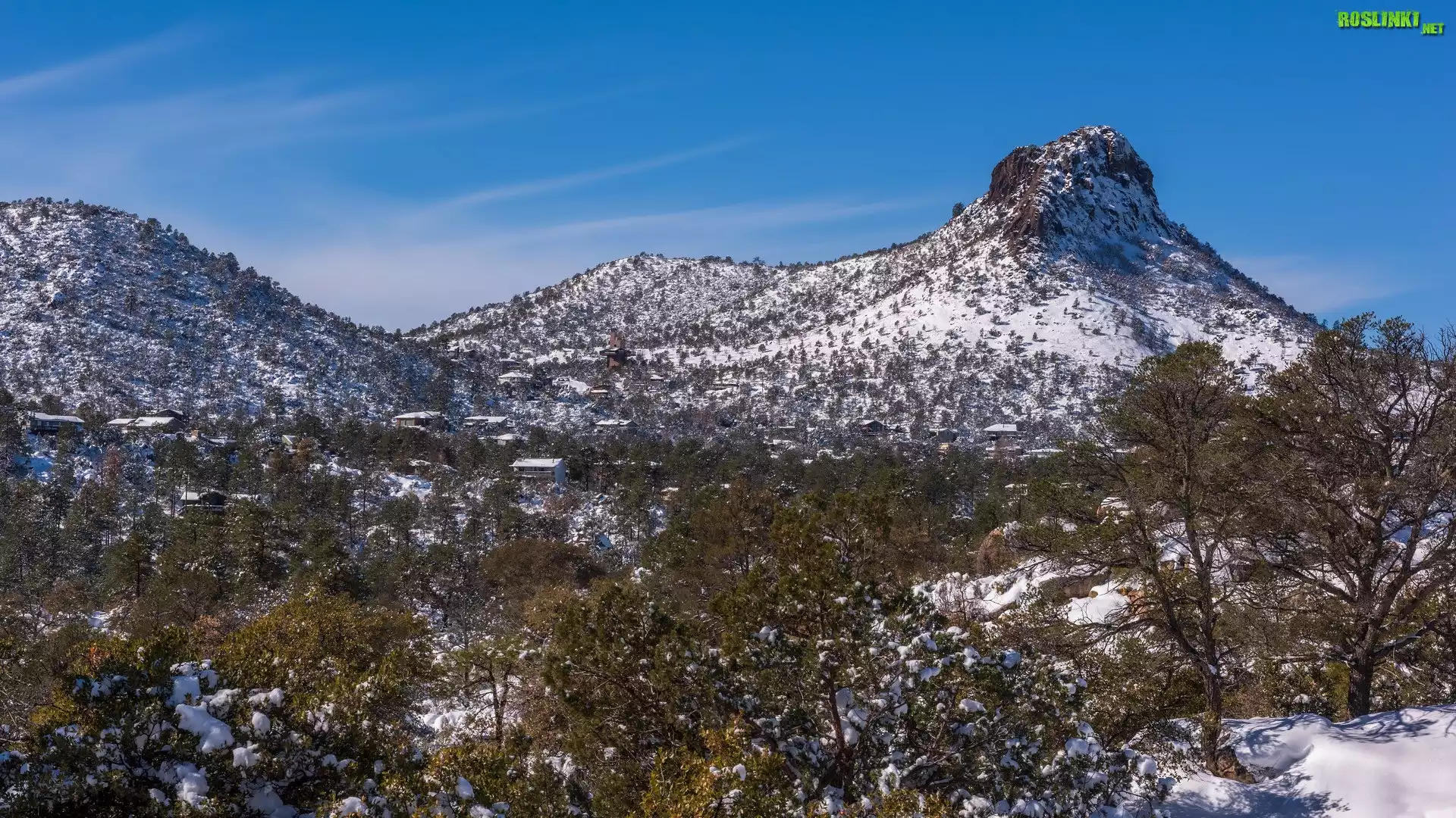 Rośliny: Zima, Góry, Drzewa, Domy, Śnieg
