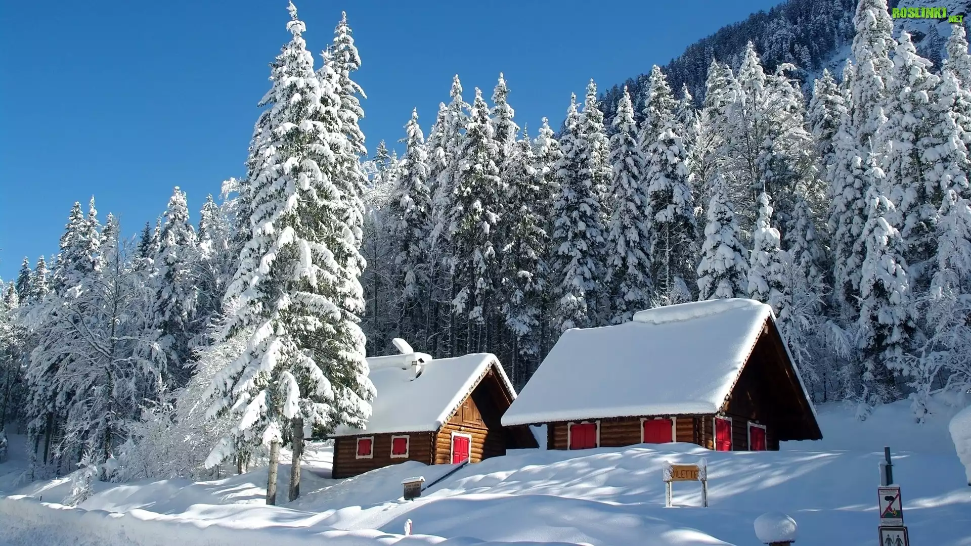 Rośliny: Zima, Ośnieżone, Drzewa, Domy, Świerki