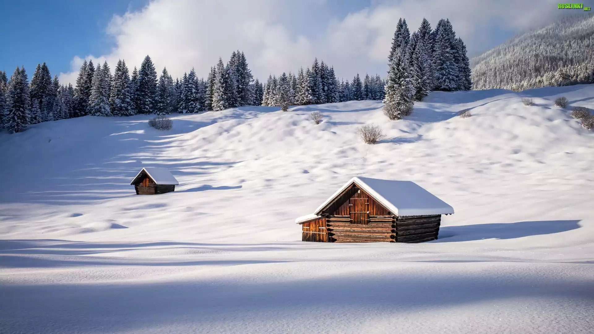 Rośliny: Zima, Drzewa, Domy, Wzgórza